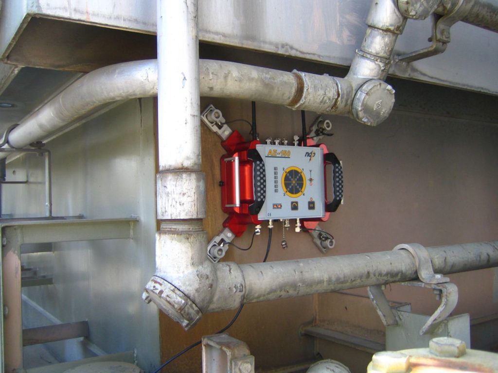 Перед установкой локализатора АЕ-150 на бак трансформатора, необходимо провести замеры размеров трансформатора и выбрать нулевую точку. Эти данные заносятся в программное обеспечение и в дальнейшем позволяют локализовать положение источника сигнала относительно нулевой точки. После этого анализатор устанавливается на корпус трансформатора и можно начинать работать.