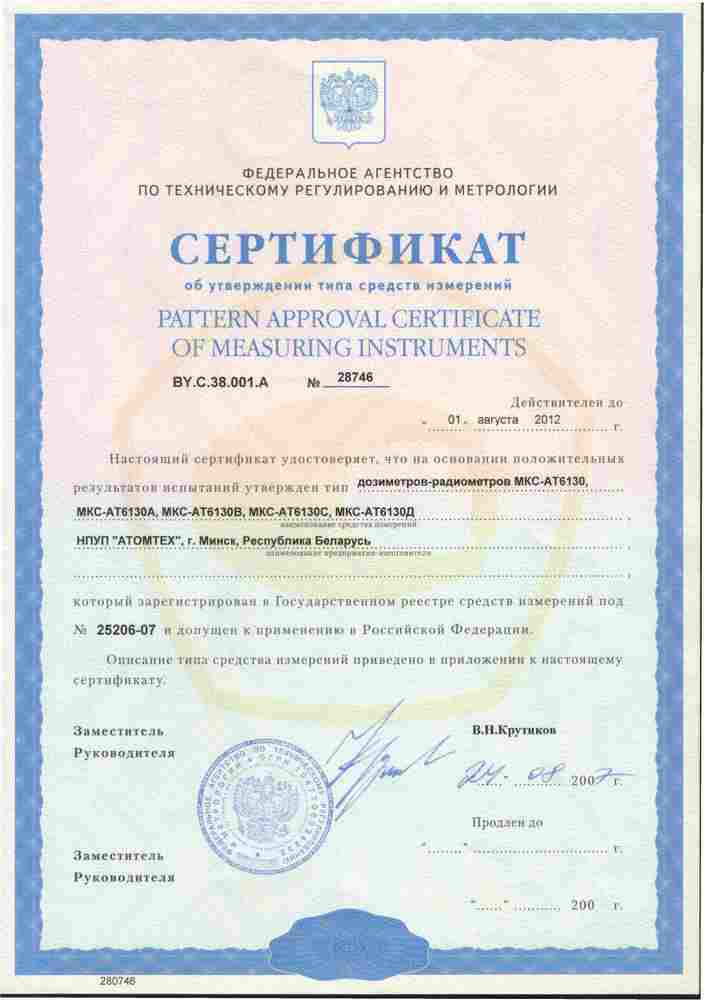 Дозиметр-радиометр внесен в Государственный реестр средств измерений РФ.