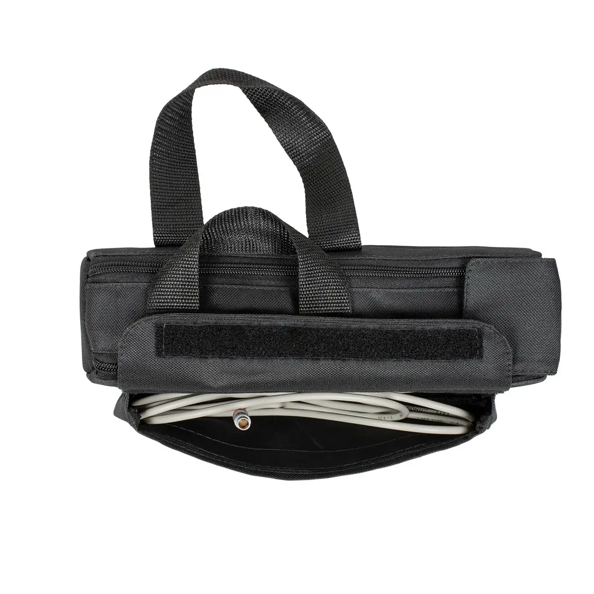 Устройство поставляется в комплекте с сумкой из непромокаемого материала. Благодаря этому, вы можете поставить комплект питания на мокрую траву, закрепить на штатив или использовать при повышенной влажности воздуха. Также, предусмотрены боковые карманы, в которые поместятся необходимые кабели, переходники и другие аксессуары.