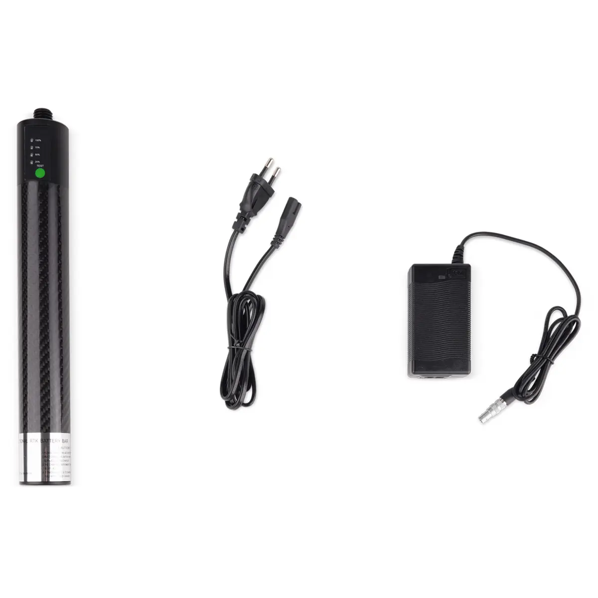 Внешнее питание для ГНСС приемника RGK BL10000 представляет собой компактный дополнительный источник энергии, который позволяет повысить продолжительность измерений, продлевая время непрерывной работы геодезического инструмента на 10-12 ч. Литий-ионная аккумуляторная батарея емкостью 10000 мАч с рабочим напряжением 12 В помещена в тонкий цилиндрический корпус в карбоновой оболочке, со стандартным винтовым креплением 5/8" x 11 в верхней части и отверстием в нижней – под аналогичный крепеж. За счет соосного размещения изделие не влияет на балансировку смонтированного на нем прибора, и может использоваться с соответствующим переходником, как адаптер трегера для установки на штативе, либо в качестве верхней секции вехи.