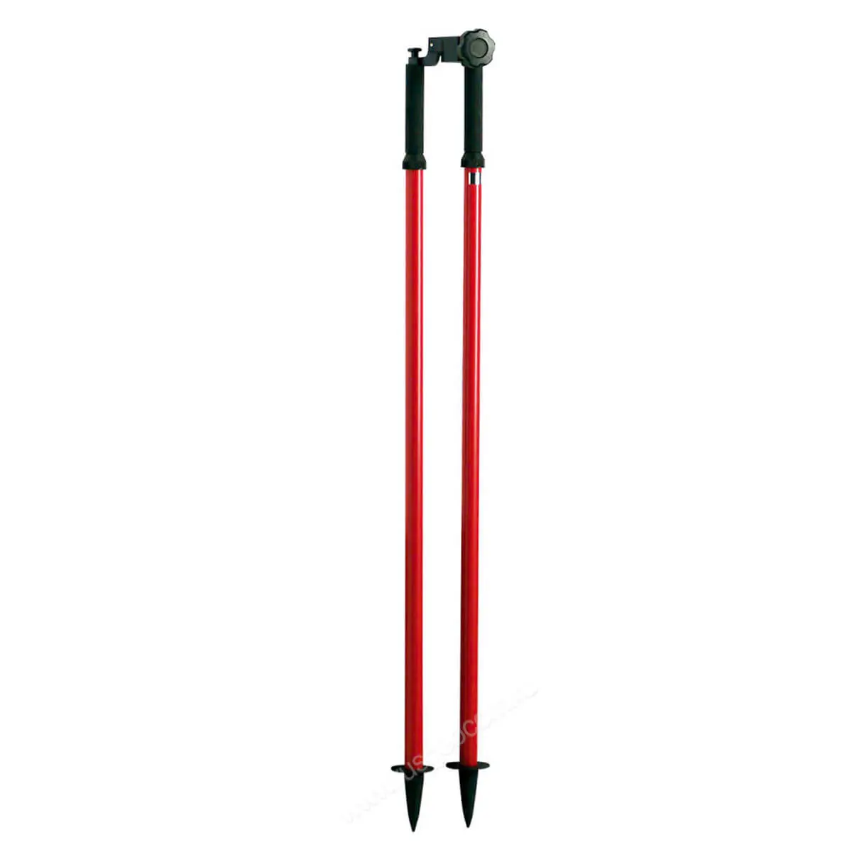 Для фиксации опоры- бипода на вехе используется зажимный механизм. Он надежно фиксирует приспособление на штанге вехи и не дает ей упасть во время проведения геодезических исследований. Сборка конструкции не требует использования дополнительных инструментов.