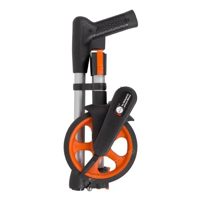 Механический счетчик расположен сверху колеса, что обеспечивает легкое считывание показаний и предотвращает возможные повреждения и столкновения с дорожным покрытием. При этом счетчик работает как при фронтальном движении инструмента, так и при обратном, а для сброса показаний оборудован кнопкой. Для быстрой остановки инструмента в рукоятку встроена тормозная кнопка. Для максимально точных измерений счетчик оснащен делением не только в метрах, но и в сантиметрах.