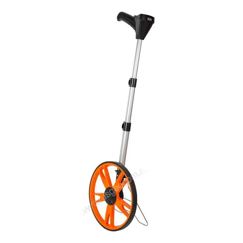 Дорожное колесо RGK Q318 позволяет выполнять измерения прямых и изогнутых линий длиной до 10 км с шагом 10 см. Благодаря электронному счетному механизму, погрешность при замерах составляет не более 0,5%. С помощью курвиметра определяется объем работ в дорожном строительстве, размечаются строительные площадки, периметр земельного участка, в том числе, с границей сложной формы.