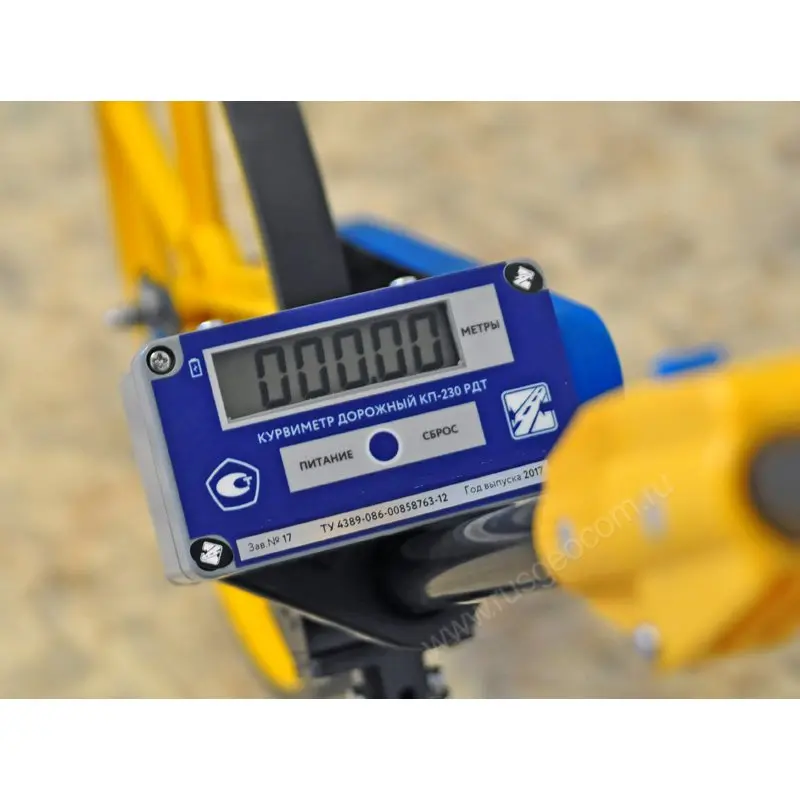 Для фиксации пройденного расстояния на дорожном колесе Росдортех КП 230 предусмотрен блок индикации. Оптоэлектронный преобразователь регистрирует количество оборотов, сделанных колесом, и вычисляет пройденное им расстояние на основе известной длины окружности.