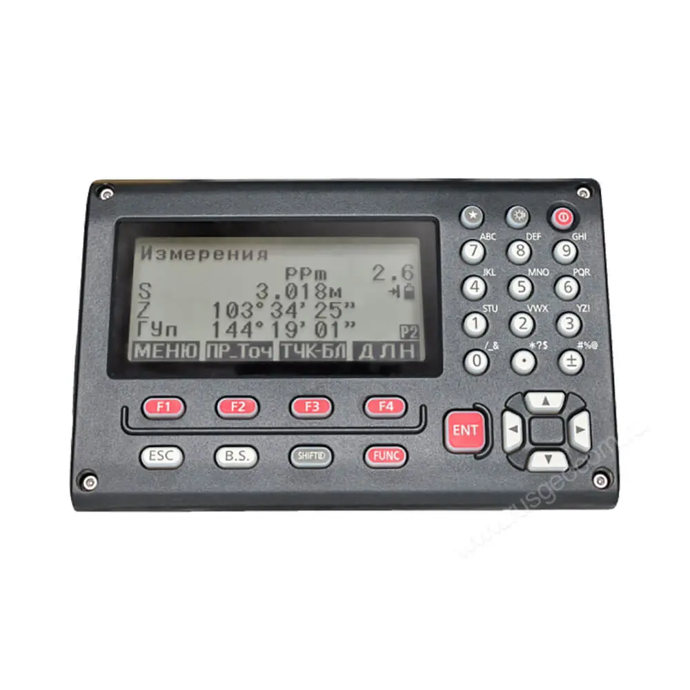 Управление дисплеем и функциями тахеометра обеспечивается за счет функциональных клавиш. С их помощью, вы можете выбирать пункты меню, отменять последнюю операцию, включать подсветку и настраивать тахеометр.