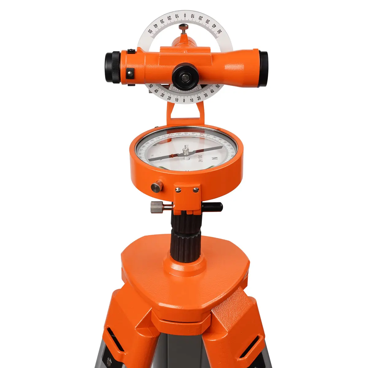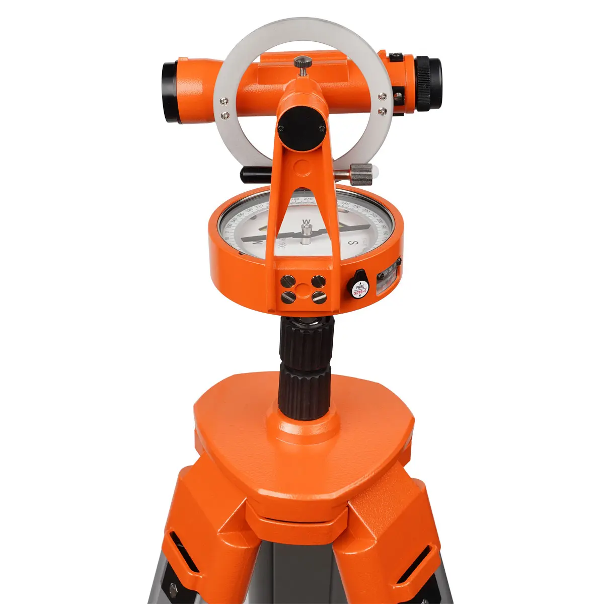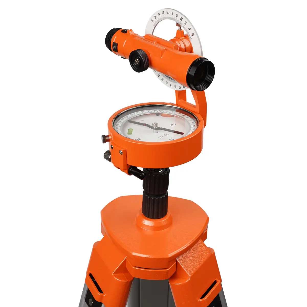 Магнитный компас устройства имеет шкалу с 360 делениями и возможностью вращения. Предусмотрена возможностью регулировки магнитного склонения, что дает возможность специалисту получать истинный азимут. Встроенные пузырьковые уровни позволяют произвести выравнивание в горизонтальной плоскости.