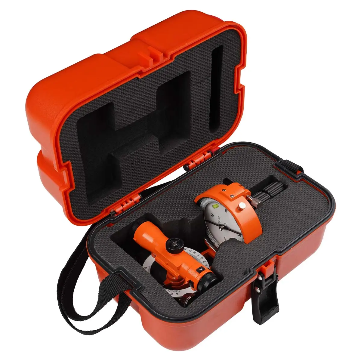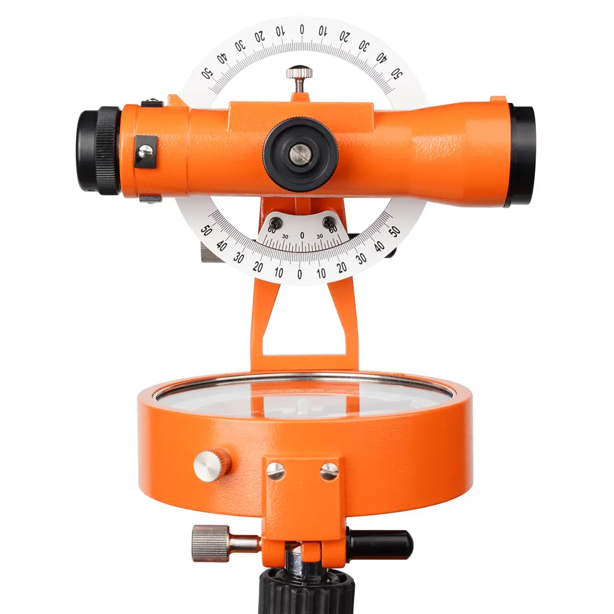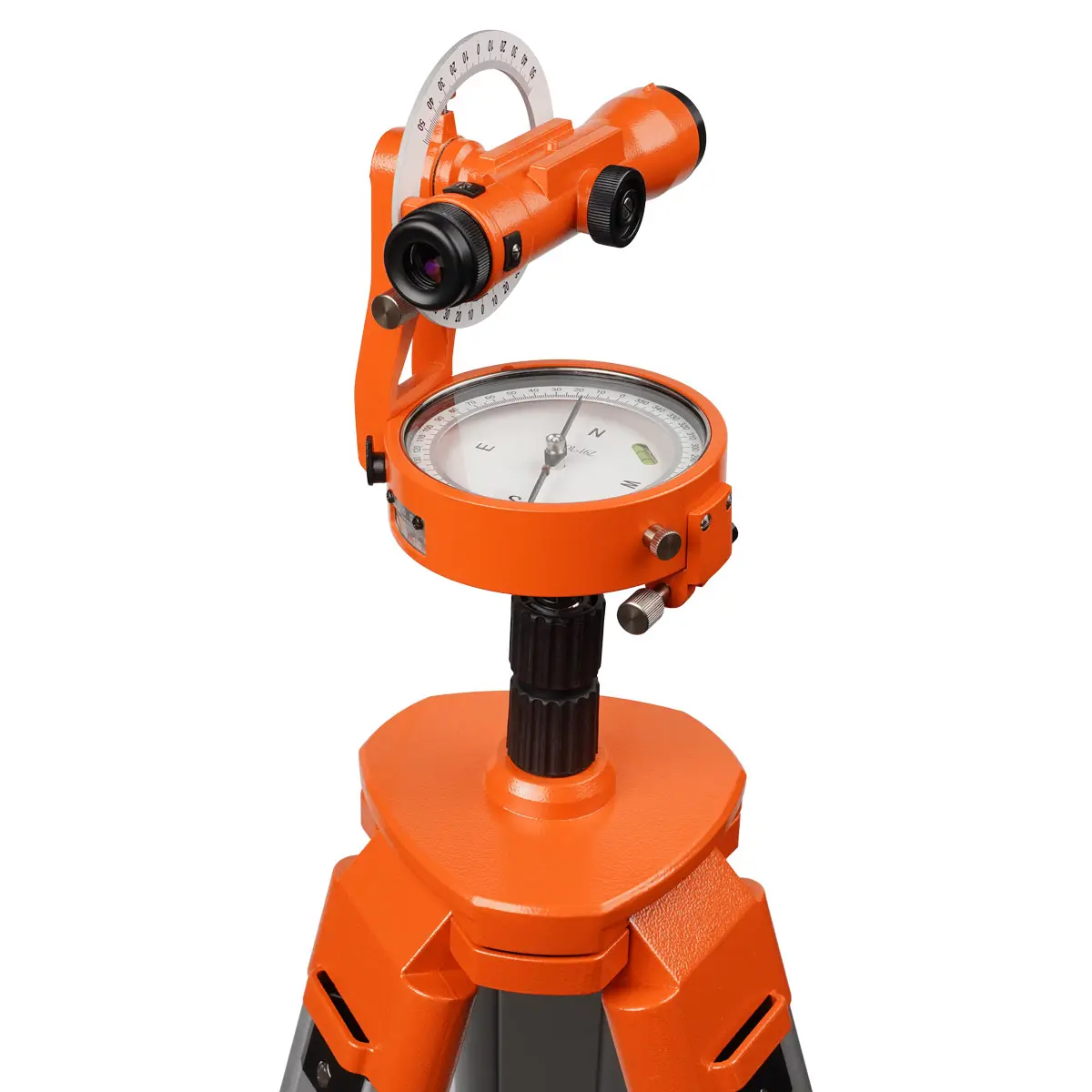 Магнитный компас устройства имеет шкалу с 360 делениями и возможностью вращения. Предусмотрена возможностью регулировки магнитного склонения, что дает возможность специалисту получать истинный азимут. Встроенные пузырьковые уровни позволяют произвести выравнивание в горизонтальной плоскости.