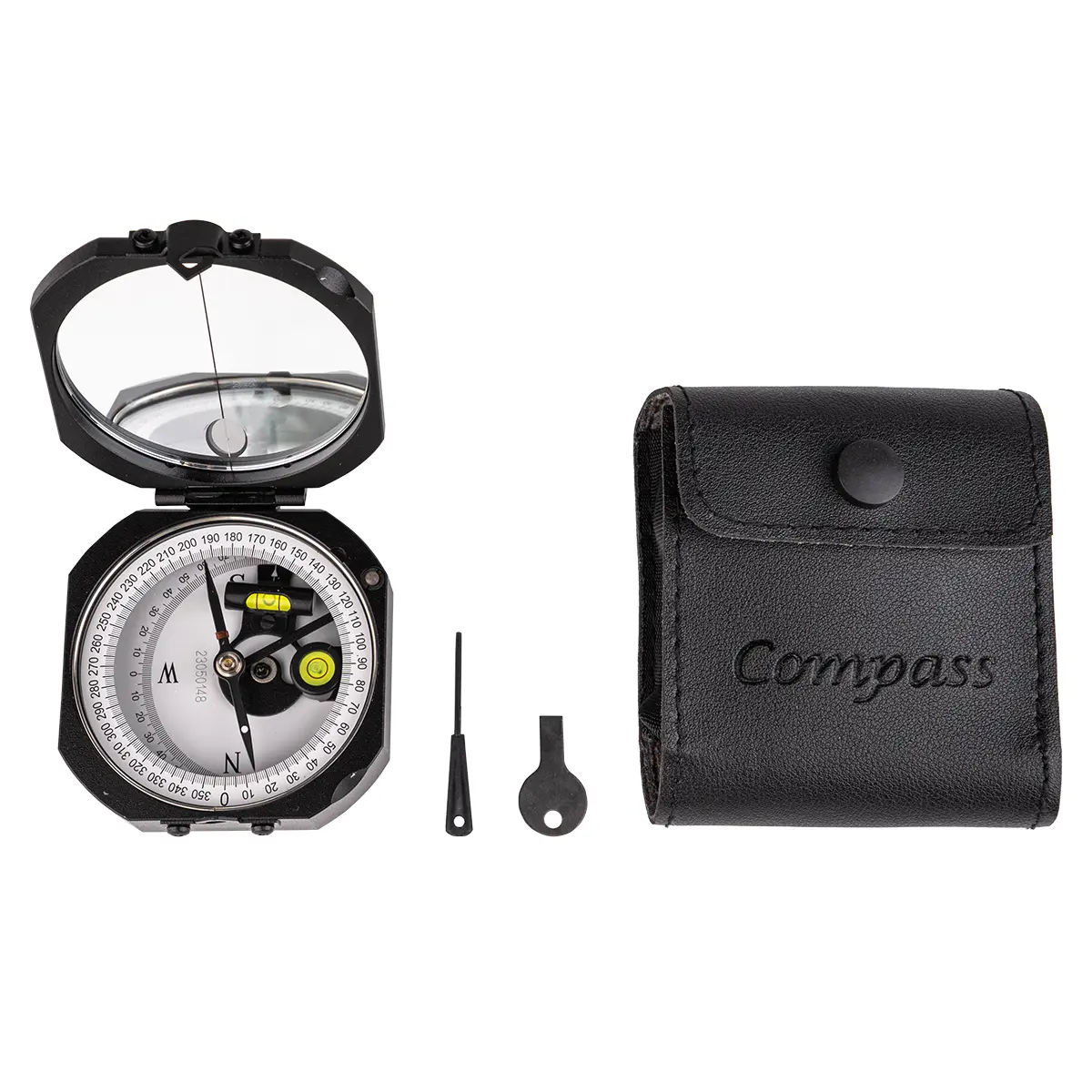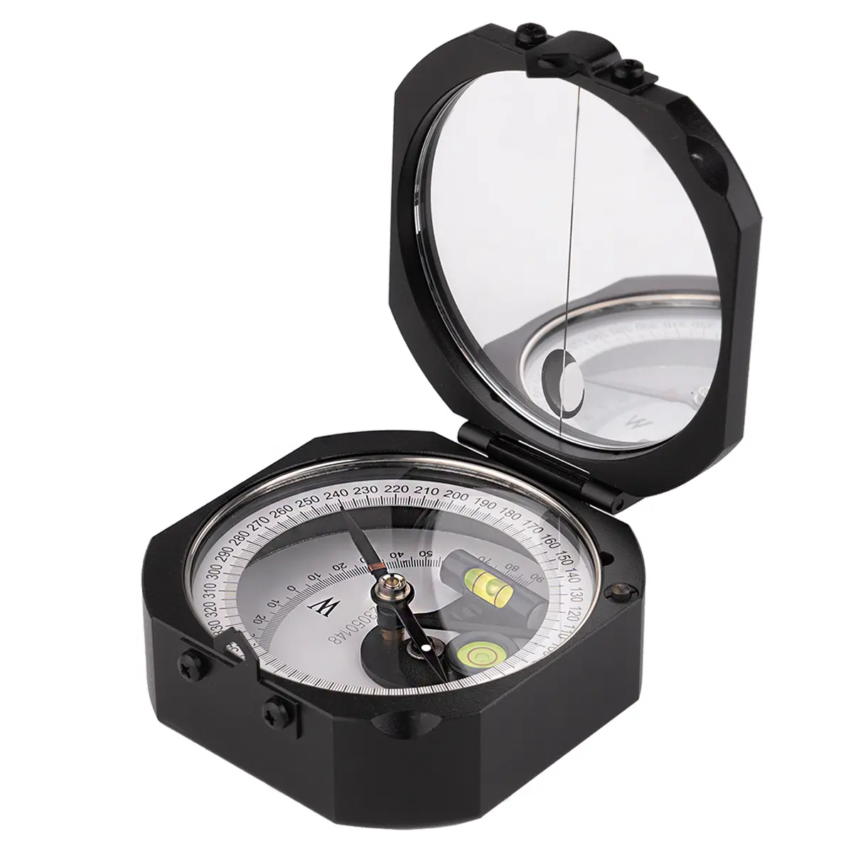 Использования целика с угловой выемкой в верхней части упрощает процесс наведения на объект визирования и повышает точность задания направления. При визировании можно визуально контролировать положение стрелки и пузырька круглого уровня через зеркало, наклонив крышку под нужным углом. Механизм арретирования магнитной стрелки включается автоматически при закрытии крышки, исключая случайное повреждение подшипника при перемещении прибора.