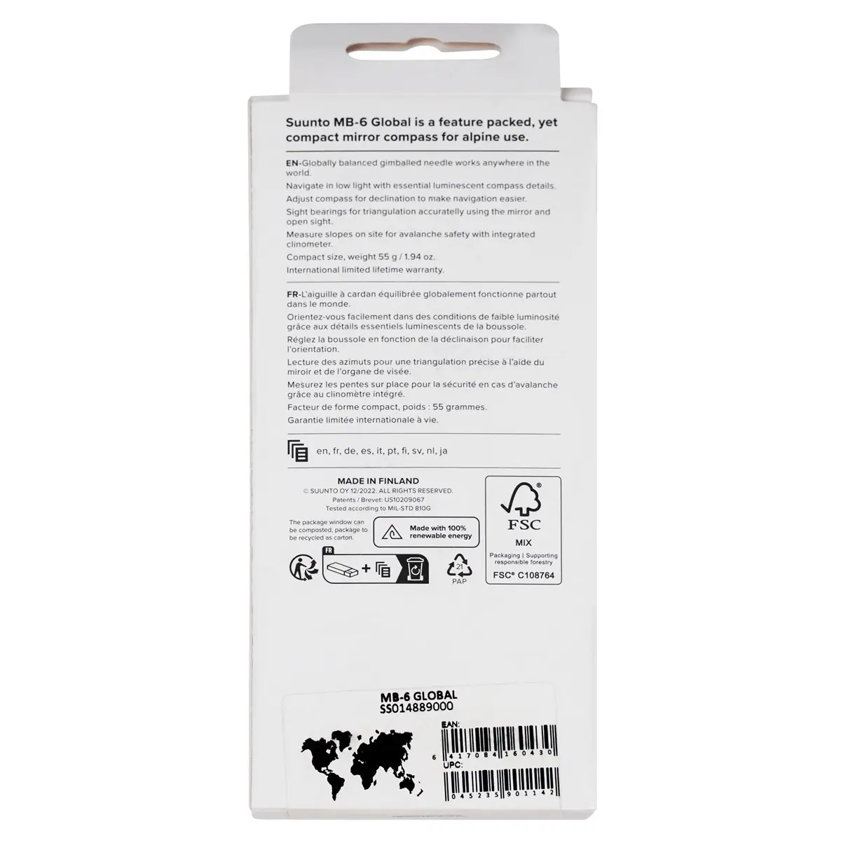 Компас SUUNTO MB-6 GLOBAL – прибор для ориентирования на местности и определения сторон света, который имеет усиленный корпус для эксплуатации в сложных условиях, а также средства навигации в горах на большой высоте. Прибор сбалансирован для использования в любом полушарии Земли.