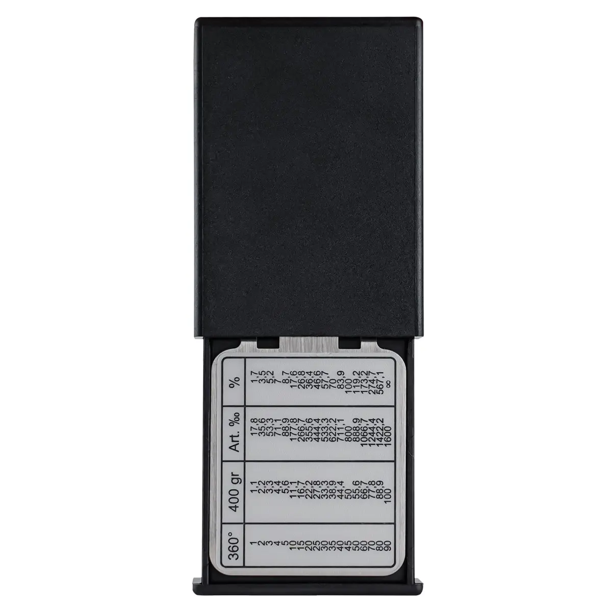 SUUNTO MB-6 GLOBAL оснащен жидкостным угломером, с помощью которого можно вычислить угол наклона местности в градусах или градиент в процентах. Диапазон измерения угловых процентов от 0° до 90°. Предусмотрена таблица перевода градусов наклона в проценты и другие единицы измерения.