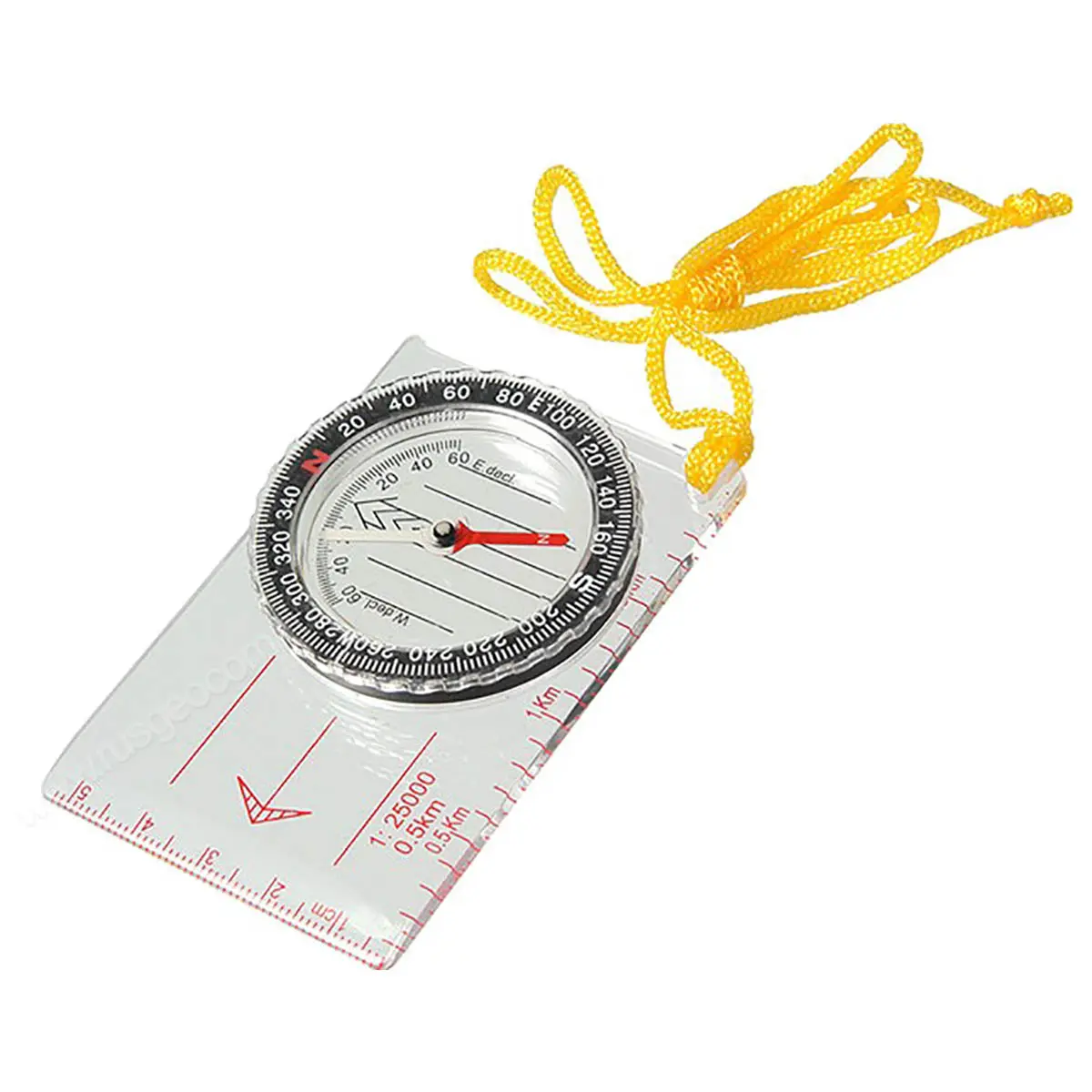 Компас спортивный состоит из основания (планшета) с линейкой для часто используемых масштабов карт 1:25000 (0.5 km), специальные направляющие красные параллельные линии, используемые для движения по азимуту. На планшете укреплена вращающаяся колба с компасом. Внутри капсулы находится магнитная стрелка, на дне капсулы параллельные линии для ориентирования компаса по линиям магнитного меридиана и индексы S, N, W, E для правильной ориентации компаса относительно северного направления. Сверху капсулы находится шкала азимута.