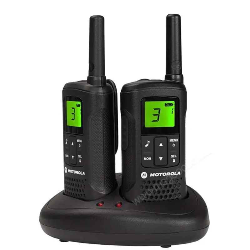 Рация Motorola TLKR T60 выполнена в защищенном корпусе, а резиновые заглушки разъемов защищают рацию от попадания влаги. Радиостанция работает в безлицензионном диапазоне PMR и позволяет вести связь на расстоянии до 6 км.
