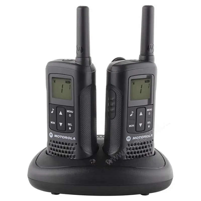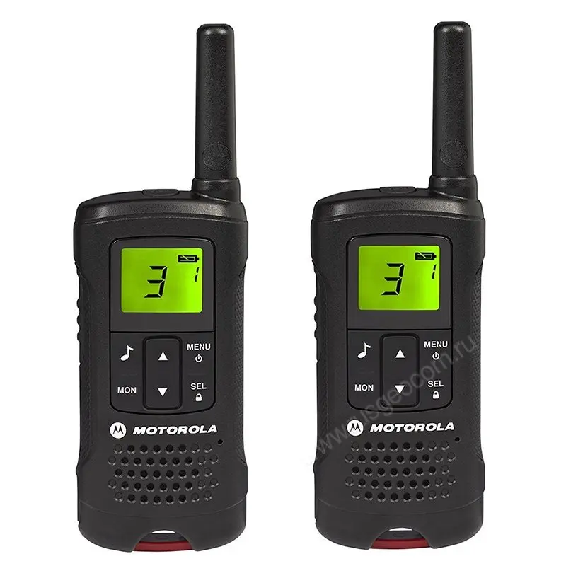 Рация Motorola TLKR T61 выполнена в защищенном корпусе, а резиновые заглушки разъемов защищают рацию от попадания влаги. Радиостанция работает в безлицензионном диапазоне PMR и позволяет вести связь на расстоянии до 8 км.