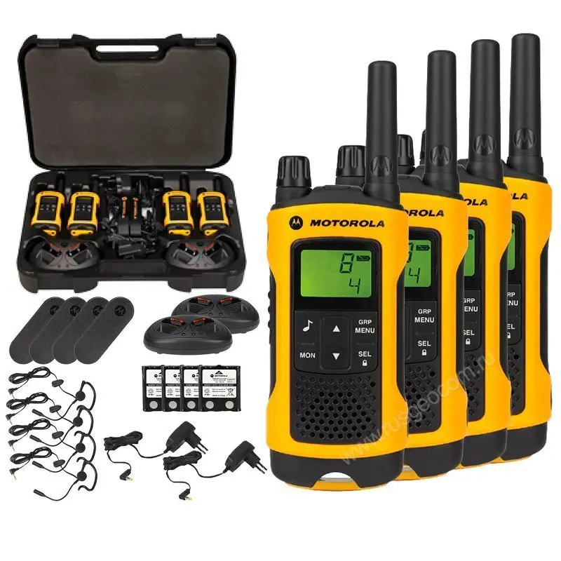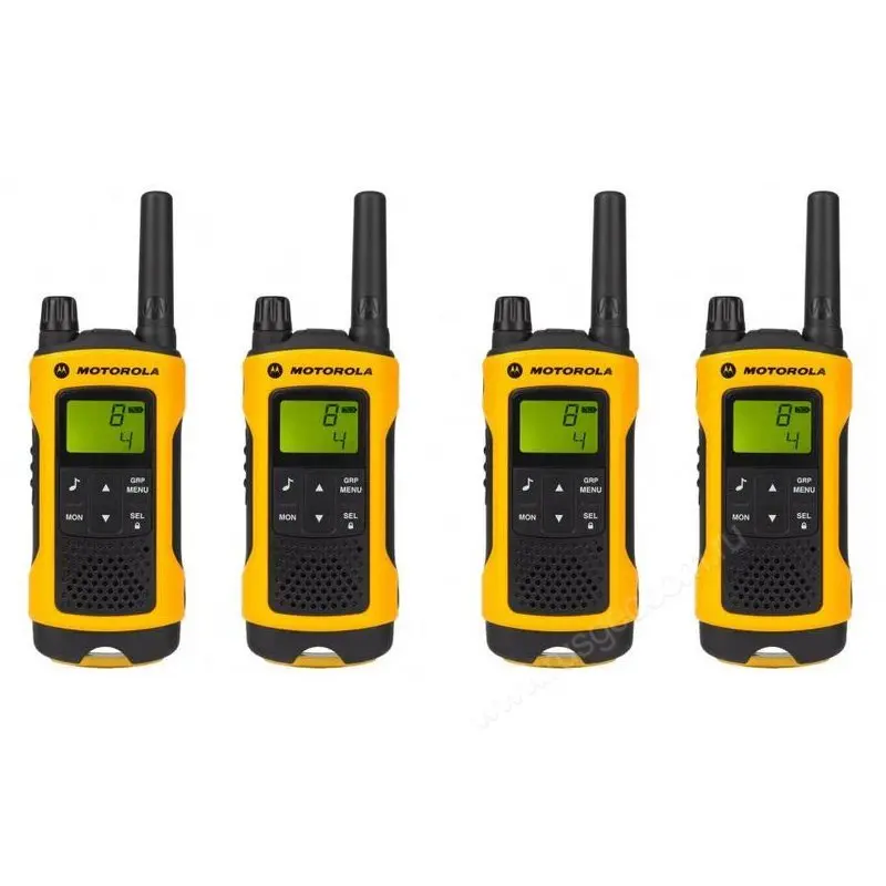 Рация Motorola TLKR T80 Extreme Quad Pack выполнена в защищенном по стандарту IPX4 корпусе, что позволяет использовать ее во время дождя. Радиостанция работает в безлицензионном диапазоне PMR и позволяет вести связь на расстоянии до 10 км.