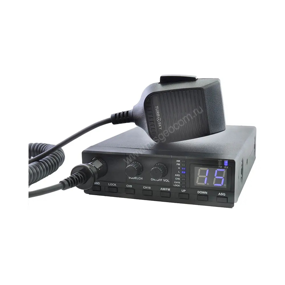 Turbosky CB-2 – мобильная СИ-БИ радиостанция предназначена для эксплуатации как в транспортном средстве, так и в качестве базовой радиостанции для осуществления двустороннего радиообмена в диапазоне частот 26.965-27.410 кГц (Гражданский диапазон СИ-БИ) с частной или амплитудной модуляцией. Предусмотрено наличие как автоматического шумоподавителя, который использует предварительно установленное среднее значение подавления шумов, так и возможность настроить уровень шумоподавления вручную. При переключении каналов текущий будет отображаться на светодиодном дисплее. Незаменимым помощником станут кнопки приоритетной связи (9/19), которые позволяют быстро переключаться на аварийные каналы. Приятным дополнением является опция блокировки органов управления: после нажатия на кнопку LOCK функционировать будет лишь клавиша РТТ, данная функция помогает предотвратить непредусмотренные нажатия на клавиатуру.