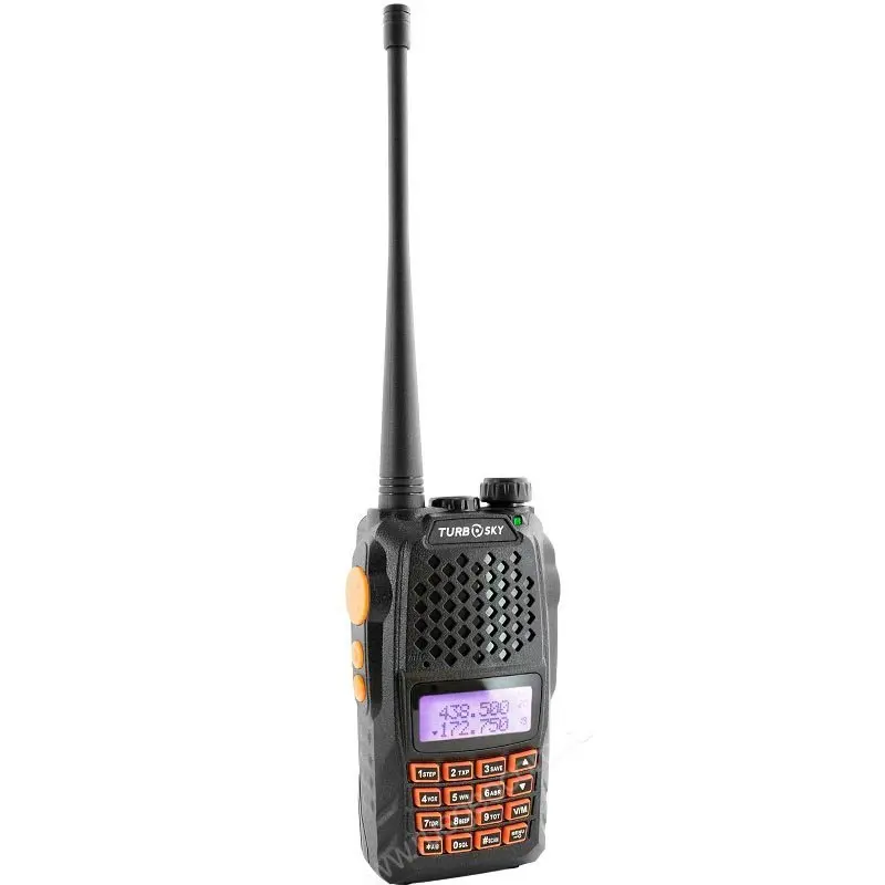 Портативная рация Turbosky T2 - универсальная радиостанция для работы в двух частотных диапазонах VHF и UHF с возможностью одновременного приёма сигнала с разных диапазонов частот. Набор функций любительской рации TurboSky T2 больше напоминает перечень возможностей профессиональной рации, с той разницей, что использование данной модели не требует лицензии.