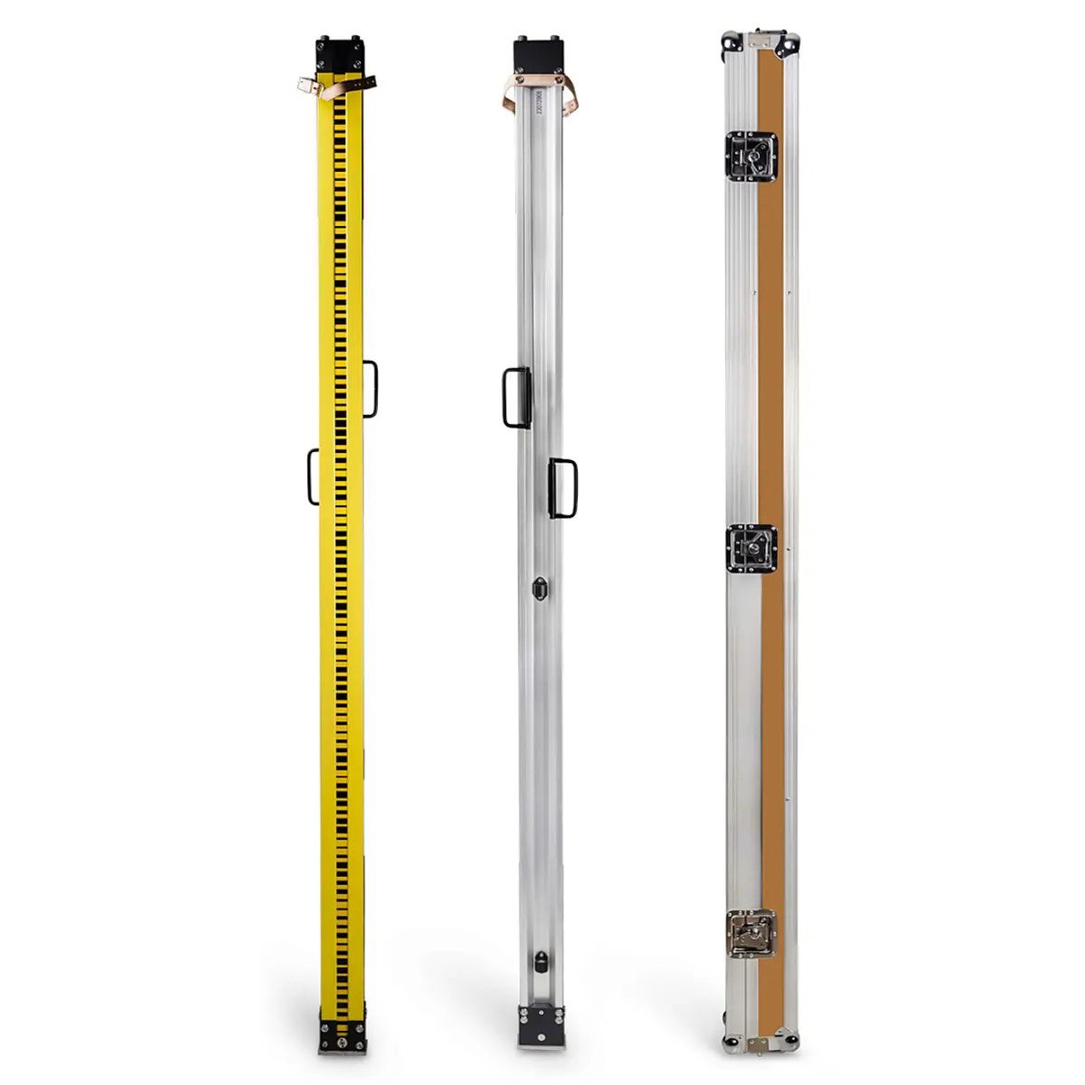Верхняя и нижняя пятки рейки выполнены из твёрдой стали, что позволяет сохранять их целостность и качество измерений на протяжение долго времени. Для удобства переноски на корпусе реек предусмотрены складные ручки. Углы и грани футляра усилены металлическими накладками, что обеспечивает улучшенную защиту от случайных ударов.
