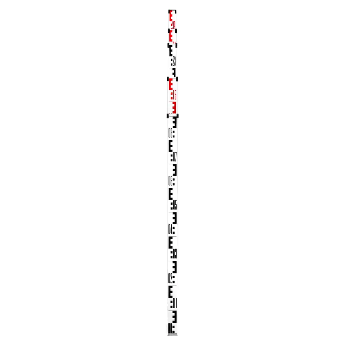 - Две шкалы с разных сторон рейки, миллиметровая и шашечная, с дециметровыми интервалами, начало отсчета которых совпадает с опорной кромкой стальной пятки в нижней части, дают возможность использовать нивелирную рейку как с оптическими, так и с лазерными нивелирами.