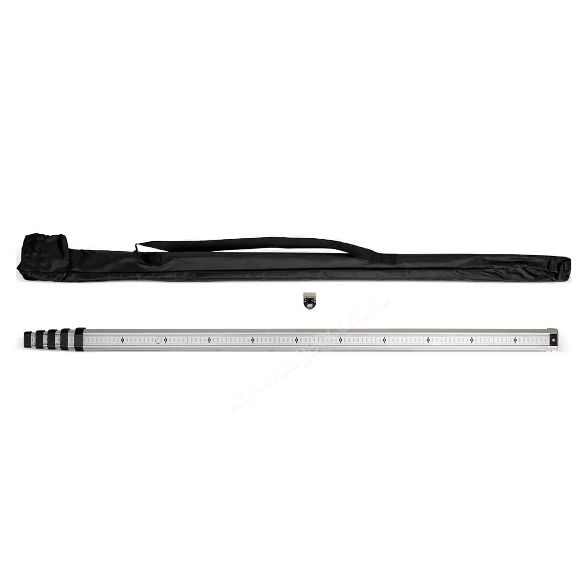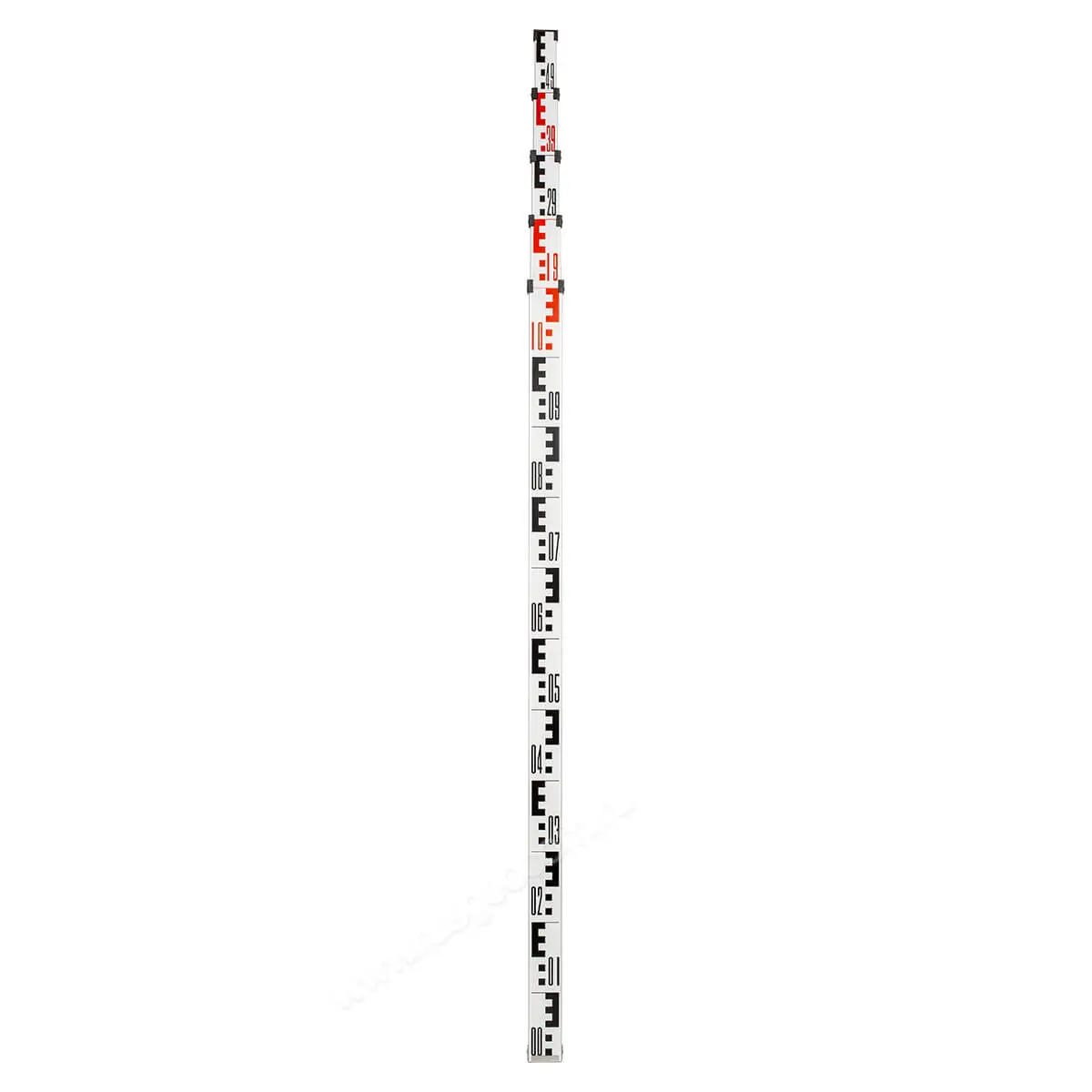 Рейка нивелирная AMO S5 представляет собой 5 последовательно выдвигаемых секций на высоту до 5 м, которые вы можете надежно зафиксировать с помощью блокирующей кнопки. Оснащена как Е-градуированной, так и миллиметровой шкалой, что позволяет проводить измерения с точностью до 1 мм. Для достижения максимально вертикального положения нивелирная рейка оснащена пузырьковым уровнем.