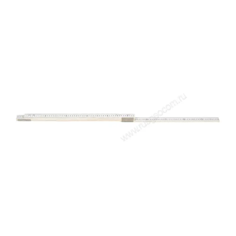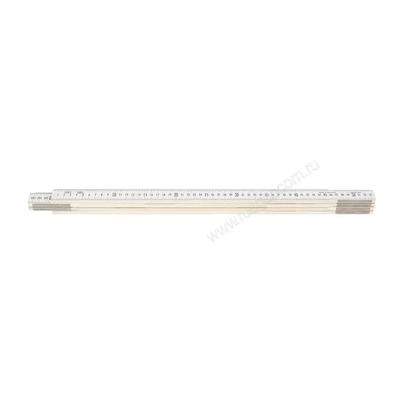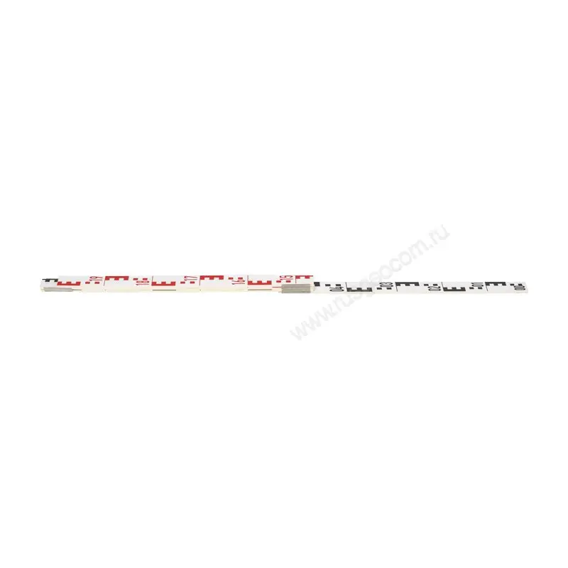 Инструмент выполнен из окрашенного дерева, которое отличается минимальным коэффициентом температурного расширения. Секции скреплены между собой прочной латунной фурнитурой, не подверженной коррозии. На переднюю сторону рейки нанесена контрастная Е-шкала, а на заднюю - миллиметровая градуировка для получения более точных данных.