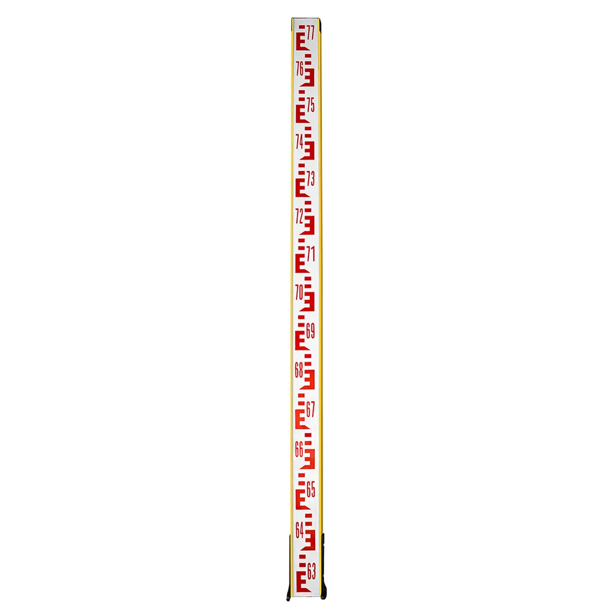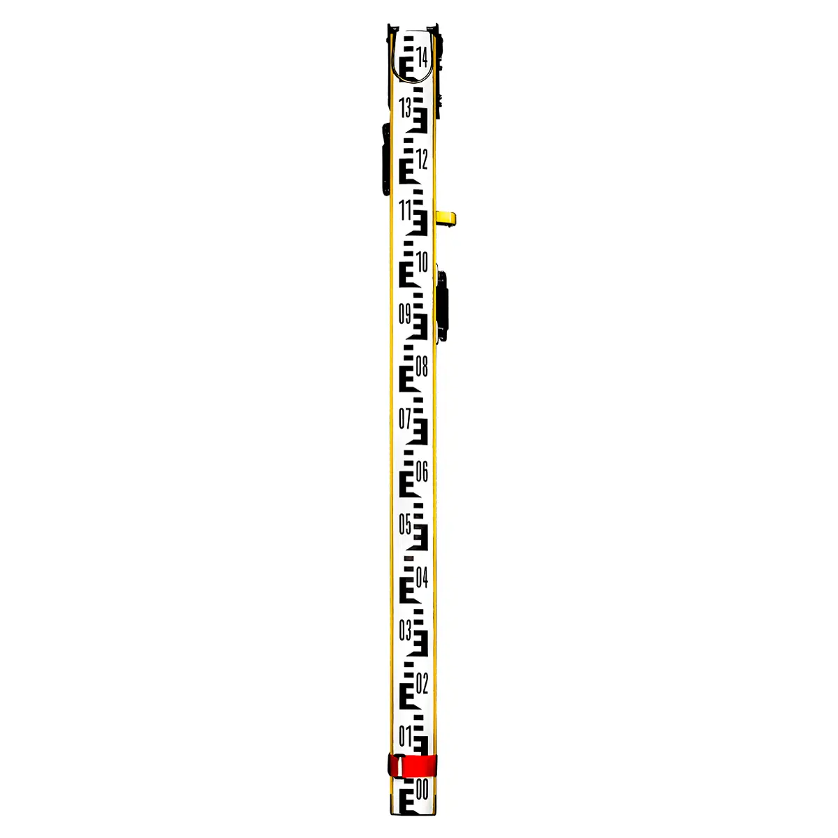 Нивелирная рейка снабжена с лицевой и тыльной стороны стандартными шашечными E-шкалами с 10-сантиметровыми интервалами, основной и дополнительной. Они выполнены разными цветами, черно-белым и красно-белым соответственно, и различаются цифровой маркировкой дециметровых делений. Разница пяток позволяет повысить точность определения превышений при проложении нивелирных ходов, последовательно снимая отсчеты с основной и дополнительной шкалы передней и задней рейки, с определением среднего показателя. Так как на красной шкале начало отсчетов не совпадает с нулевым положением, то при выполнении расчетов исключается вероятность субъективных ошибок из-за неосознанной подгонки результатов.