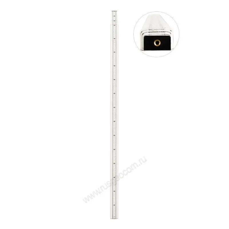 Шкалу с Е-градуировкой хорошо видно издалека даже в сложных погодных условиях. На обратной стороне инструмента расположены миллиметровые деления для высокоточных исследований. При проведении геодезических измерений специалист постоянно перемещает рейку с места на место, поэтому небольшой вес устройства - приятное преимущество, которое положительно влияет на скорость и эффективность работы.