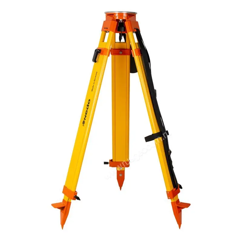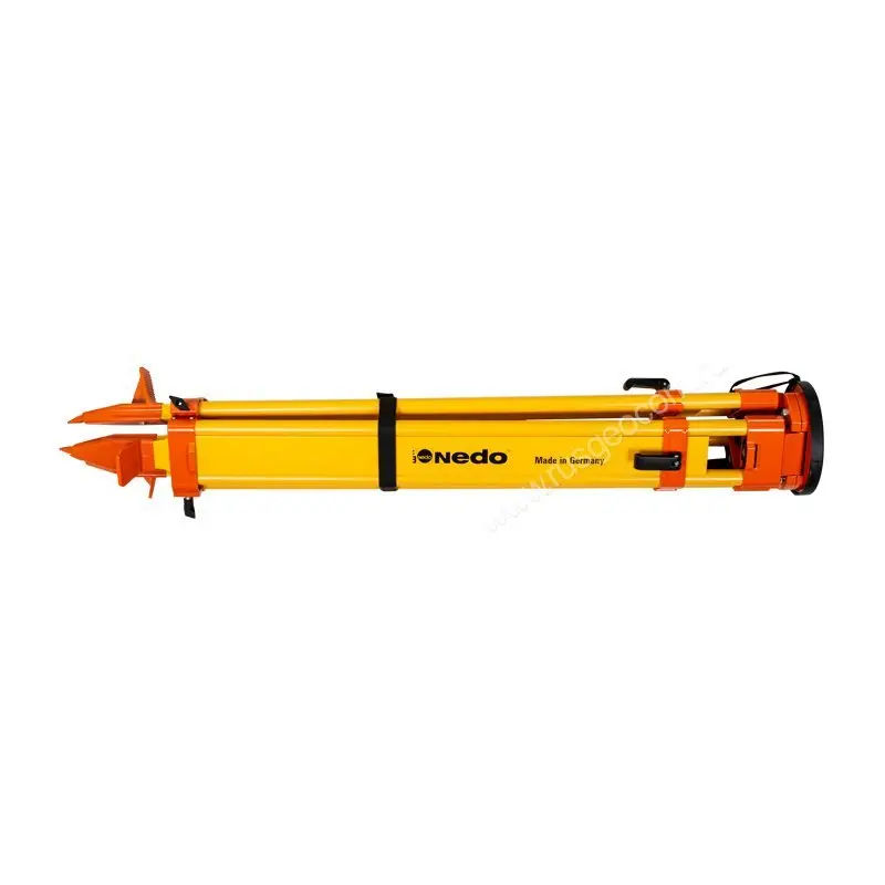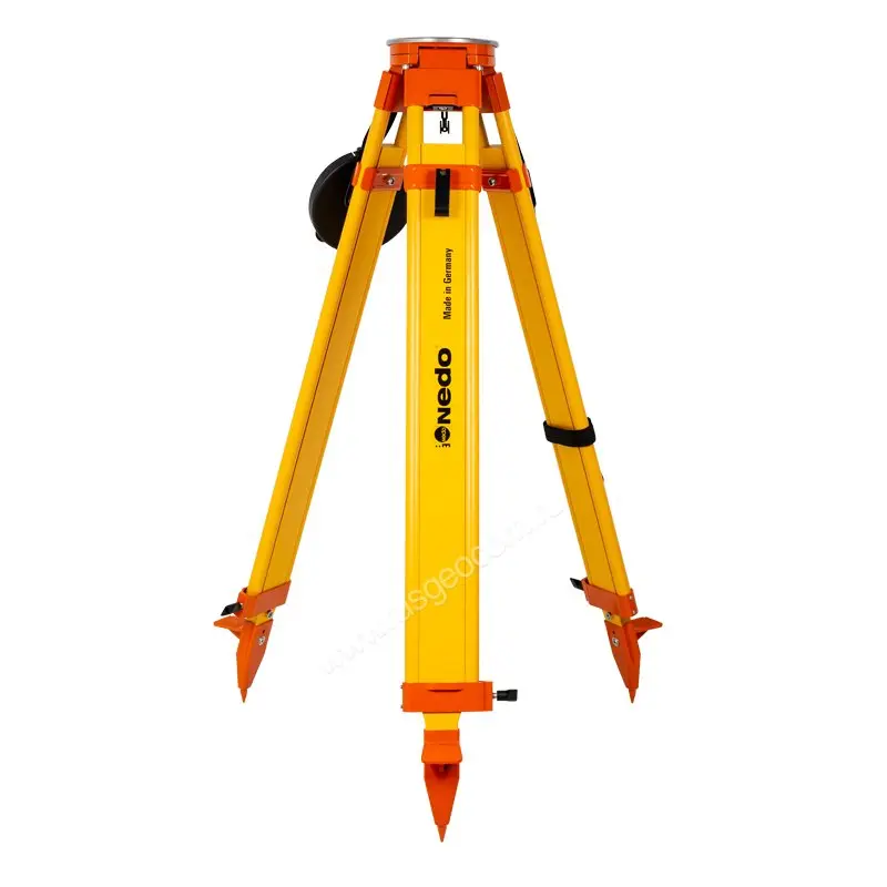 Жесткий и массивный деревянный геодезический штатив NEDO 200532 с двойной фиксацией ножек и увеличенной круглой площадкой для установки высокоточных тахеометров, теодолитов и нивелиров.