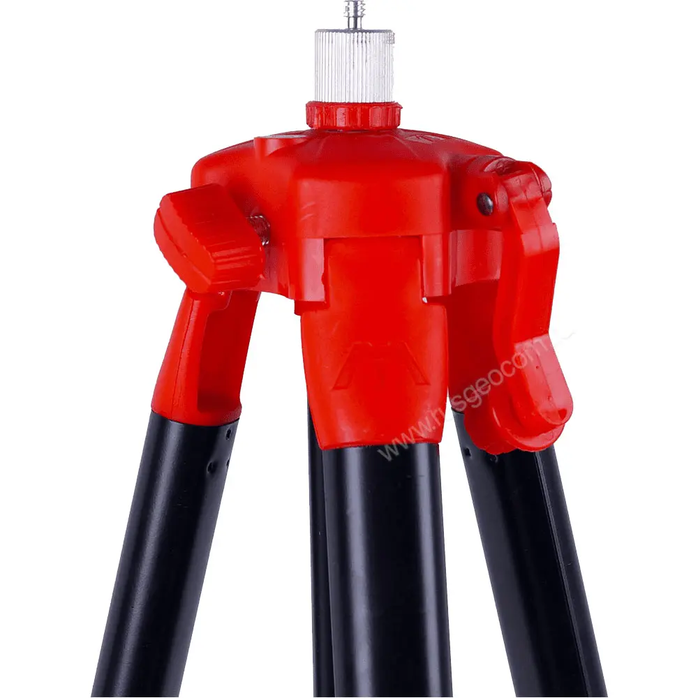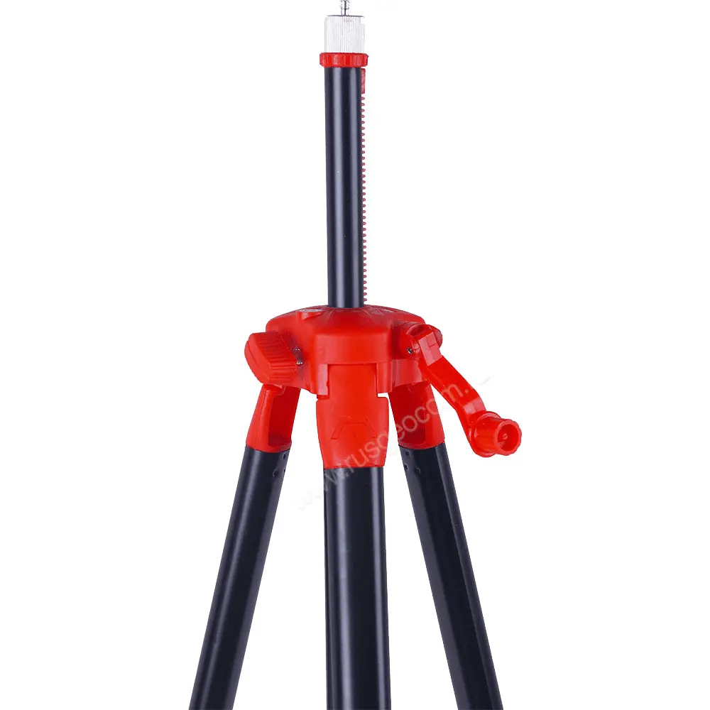 Телескопические стойки геодезического штатива надежно фиксируются клипсами. Такой метод крепления значительно ускоряет приведение треноги в рабочее положение.