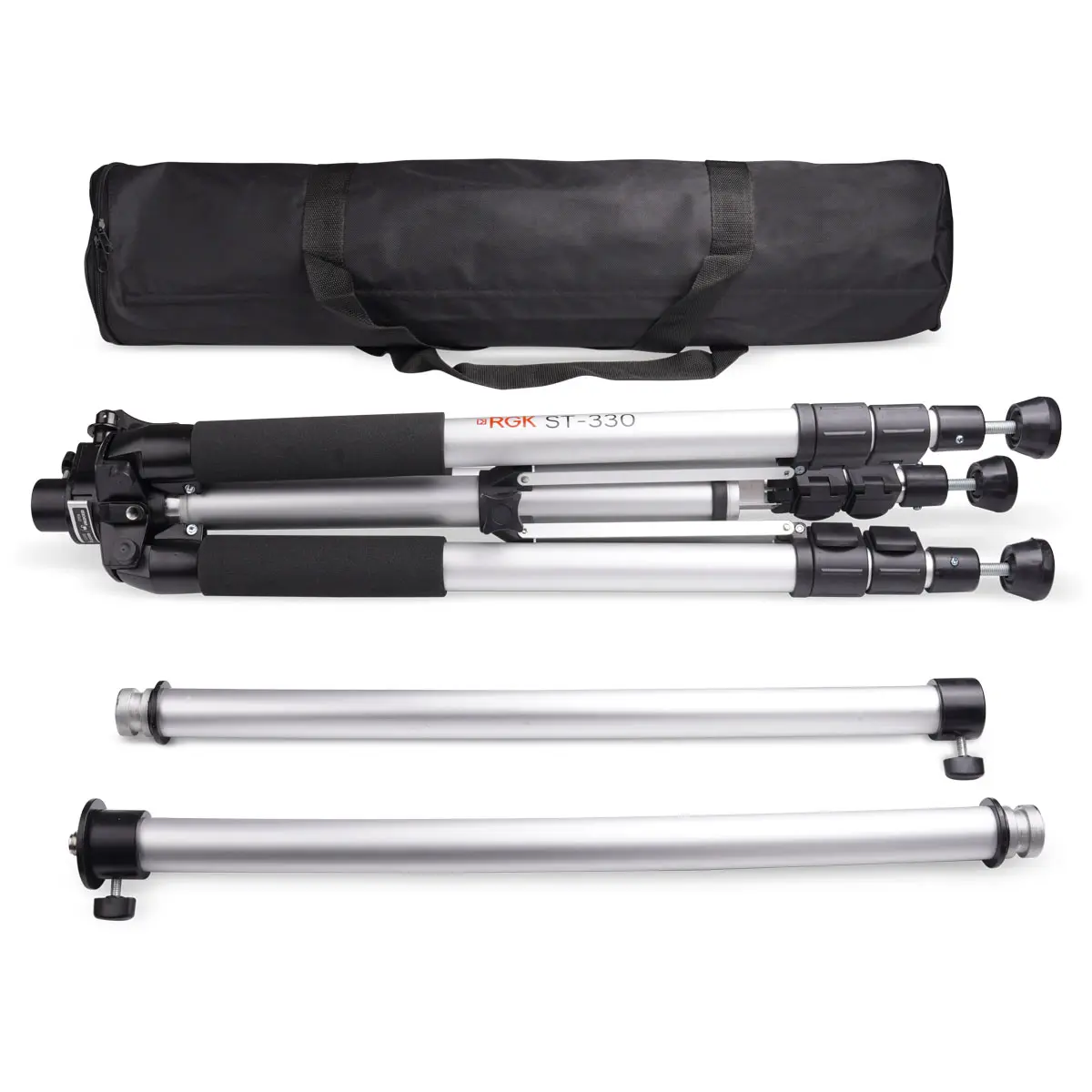 Элевационный штатив RGK ST-330 позволяет при выполнении ремонтных и отделочных работ устанавливать лазерные построители на требуемой высоте с целью создания опорной плоскости для выравнивания и разметки. Изделие включает в себя подъемный механизм на треноге, с телескопическими трехсекционными ножками, и две съемные вертикальные секции, которые задействуются по мере необходимости. Благодаря этому устройство обладает компактными размерами в транспортировочном положении, что упрощает его переноску и перевозку, а в рабочем состоянии оно способно поднимать лазерный уровень на высоту до 3 м.