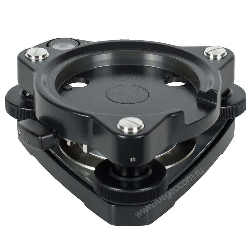 Трегер RGK AJ10-D представляет собой подставку под геодезические приборы и аксессуары с трехштырьковым соединителем. Изделие оборудовано подъемным механизмом с тремя винтами с увеличенными маховиками и круглым пузырьковым уровнем для горизонтирования, а также 4-кратным оптическим отвесом, который предназначен для визуального центрирования прибора над выбранной точкой.