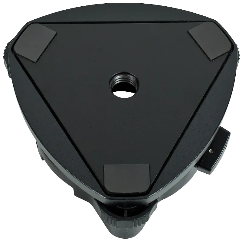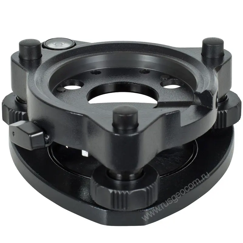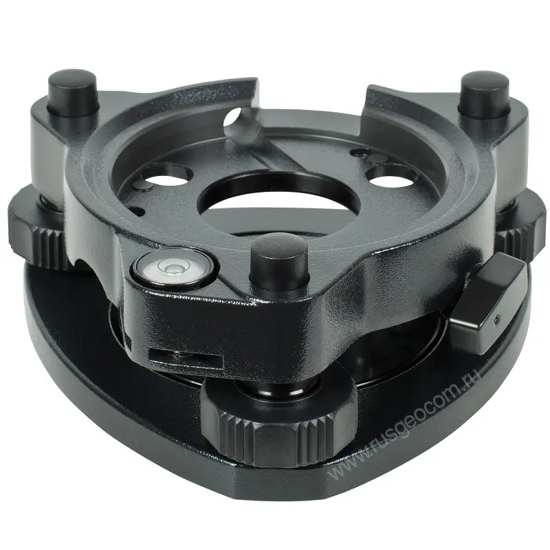 Основное предназначение трегера - высокоточная горизонтальная подстройка положения оборудования. Корректировки производятся при помощи подъемных винтов с плавным ходом и круглого пузырькового уровня. При позиционировании штатива можно использовать лазерный центрир, встроенный в тахеометр или адаптер.