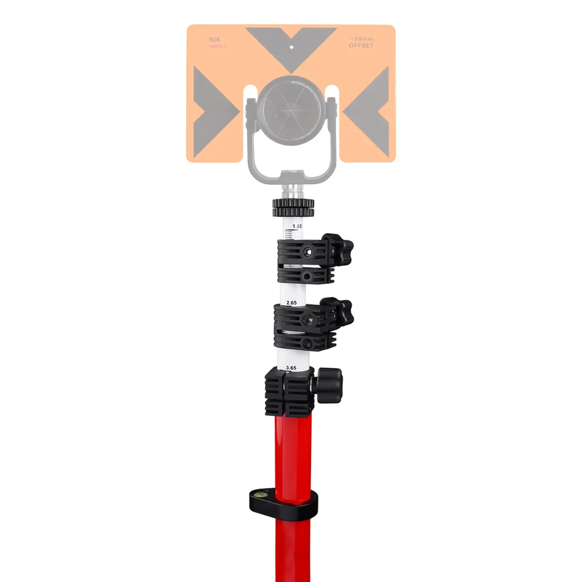 Практичная облегченная телескопическая веха RGK CLS46-FG, весом 2 кг, изготовленная из лёгкого токонепроводящего стекловолокна с регулируемым пузырьковым уровнем, предназначена для установки отражательных систем или ГНСС приемников на высоте до 4,6 м. Оснащена надёжным закрепительным винтом и регулируемым креплением с резьбой 5/8 x 11, позволяющим надежно фиксировать секции. В стандартной комплектации предусмотрен транспортировочный чехол и насадка на наконечник, для работы на нетвердом основании.
