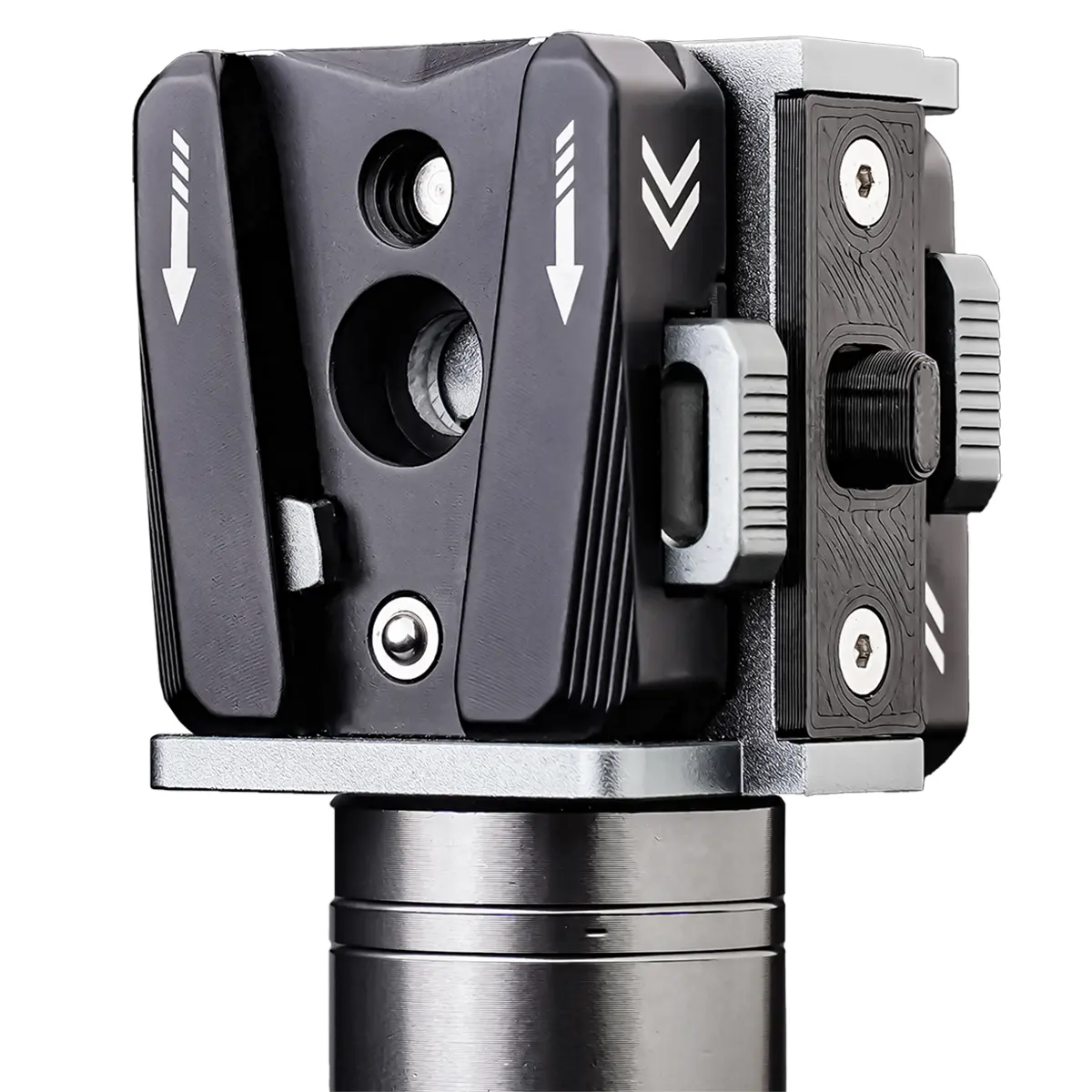 Веха позволяет максимально охватить даже труднодоступные объекты, находящиеся выше или ниже вас, так как веха имеет инвертированный быстросъёмный адаптер, который позволяет закрепить сканер в отвесном положении с возможностью поворота на 180°. Адаптер изготовлен из качественного металла и позволяет быстро и просто сменить ориентацию вехи (верх/низ). Также адаптер оснащен специальным фиксатором, позволяющим избежать случайного нажатия и отсоединения сканера от вехи.
