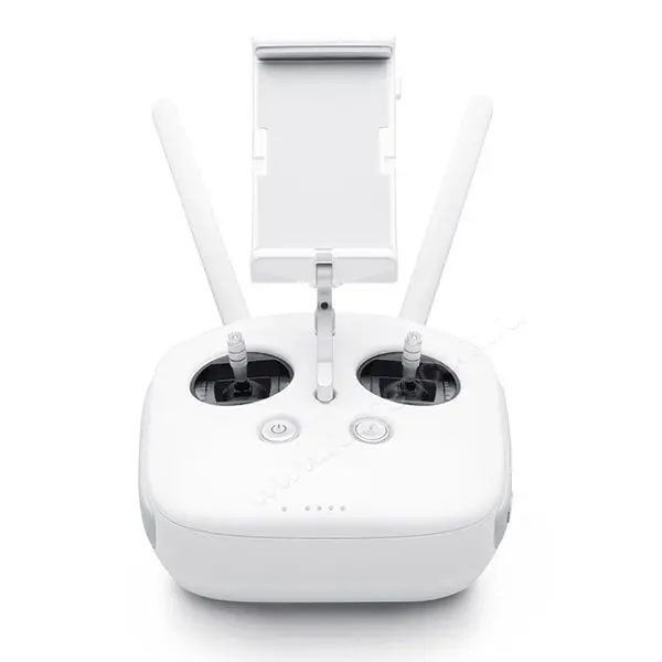 Пульт дистанционного управления квадрокоптером Phantom 4 Pro работает на частоте 2,4 ГГц или 5,8 ГГц, обеспечивая прием видеолинка с дрона и осуществляя управление беспилотником. Более свободный от помех диапазон частот может быть выбрать пилотом. Благодаря этому дальность передачи видеосигнала может достигать 7 км.
