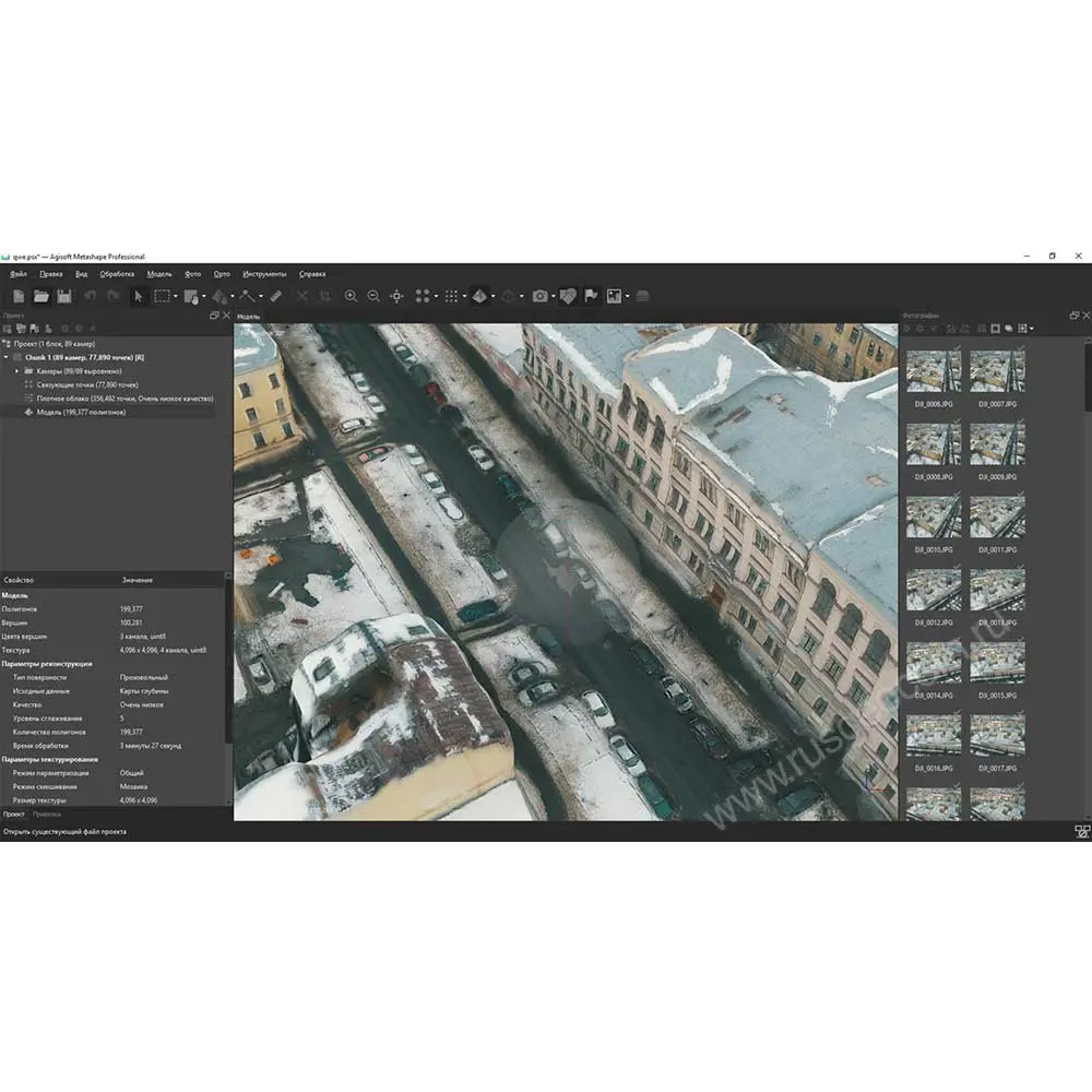 Metashape позволяет создавать высокодетализированные 3D модели только по фотографиям, без использования дорогостоящего оборудования.