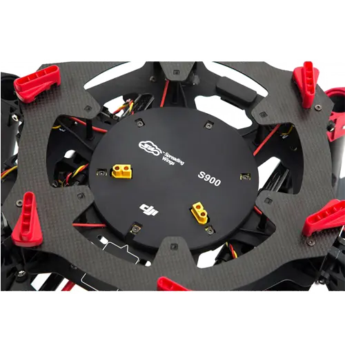 Особенностью конструкции DJI SPREADING WINGS S900 является применение съёмной верхней пластины, обеспечивающей лёгкий доступ для быстрой установки и обслуживания полётного контроллера, системы распределения питания, iOSD, Lightbridge и других дополнительных аксессуаров.