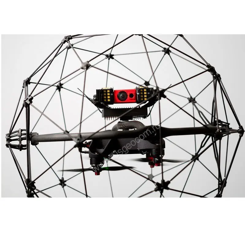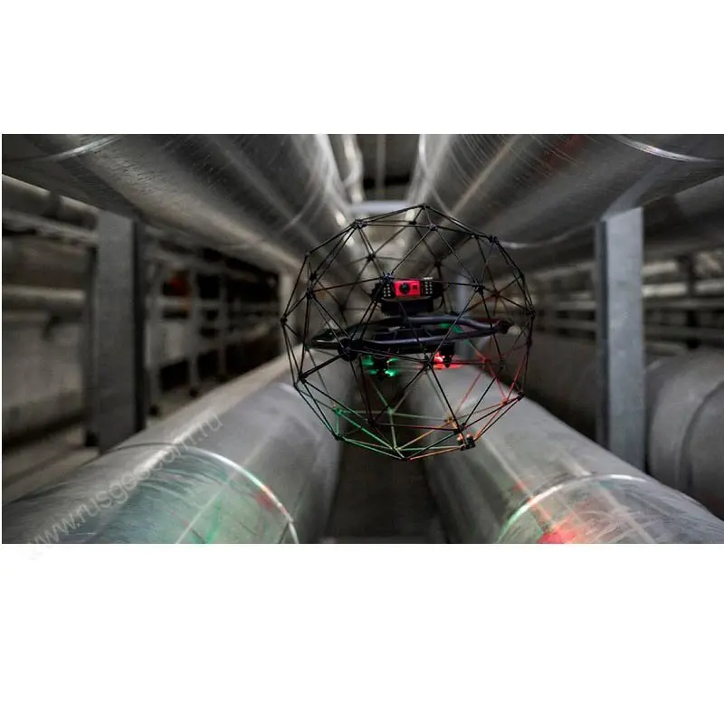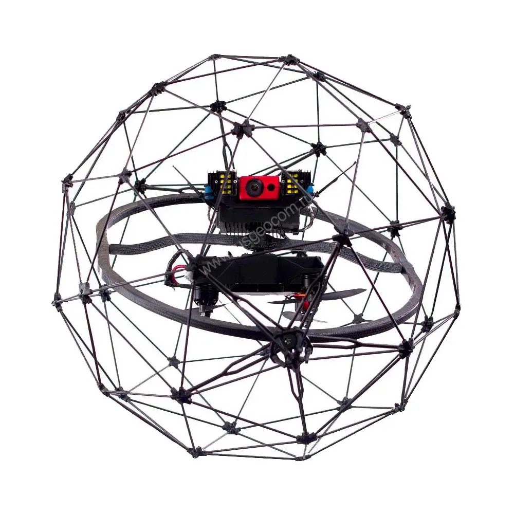 Flyability Elios – промышленный квадрокоптер, оборудованный системой защиты от столкновений. Дрон-инспектор обладает сферическим защитным каркасом на свободно вращающемся подвесе с 6-осевой гироскопической стабилизацией. Защитная сфера выполнена из углепластика и защищает квадрокоптер от столкновений. Благодаря такой конструкции соприкосновение с неподвижными объектами и человеком не изменяет траекторию полёта квадрокоптера. Elios может использоваться в замкнутых пространствах, применяется для инспекции промышленных и строительных объектов.