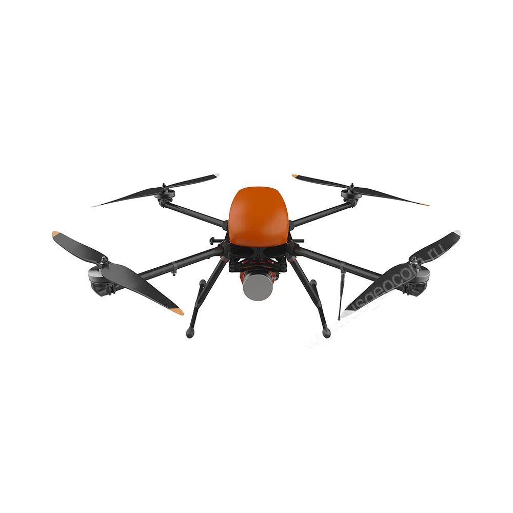 Силовая установка коптера обеспечивает стабильный полет по сложным маршрутам с учетом всех особенностей рельефа. Сильный ветер до 12 м/с не влияет на точность следования курсу и качество сканов.