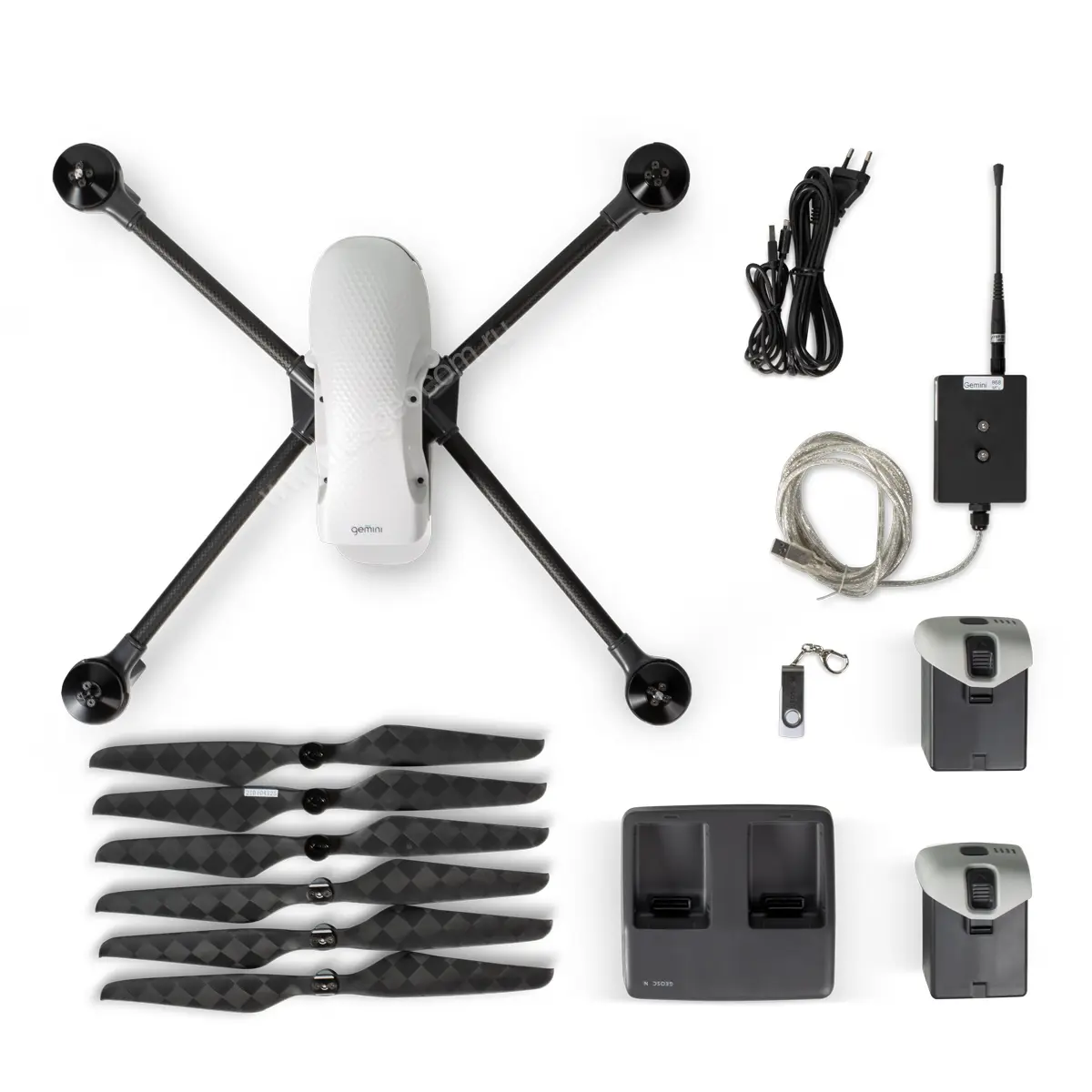 Квадрокоптер Геоскан Gemini - мобильный аэрофотосъемочный комплекс для создания карт, ортофотопланов и цифровых моделей, созданный на основе сверхлегкого беспилотного аппарата с функцией автоматического управления. Прибор, способный за один полет охватить площадь 1 - 1,5 квадратных километра, является одним из наиболее доступных в промышленном классе.