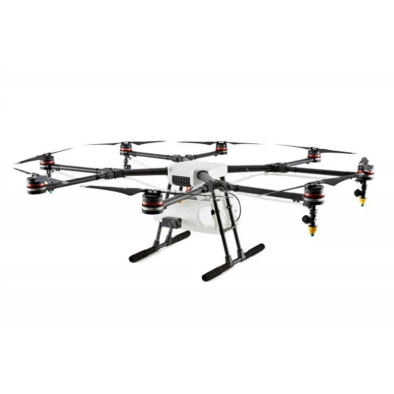 Октокоптер DJI Agras MG-1 предназначен для опрыскивания полей пестицидами и другими растворами. Он может работать в автоматическом режиме и способен за один раз поднимать химикаты объемом 10 л.