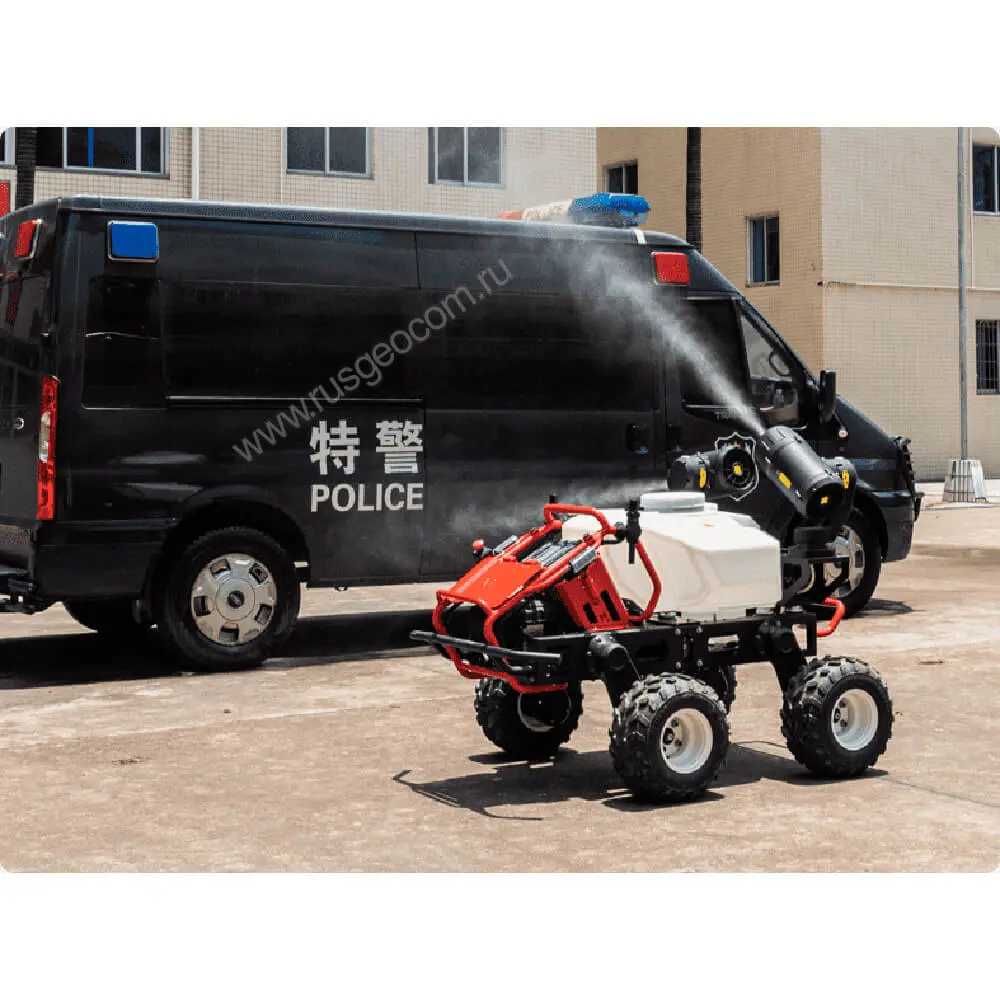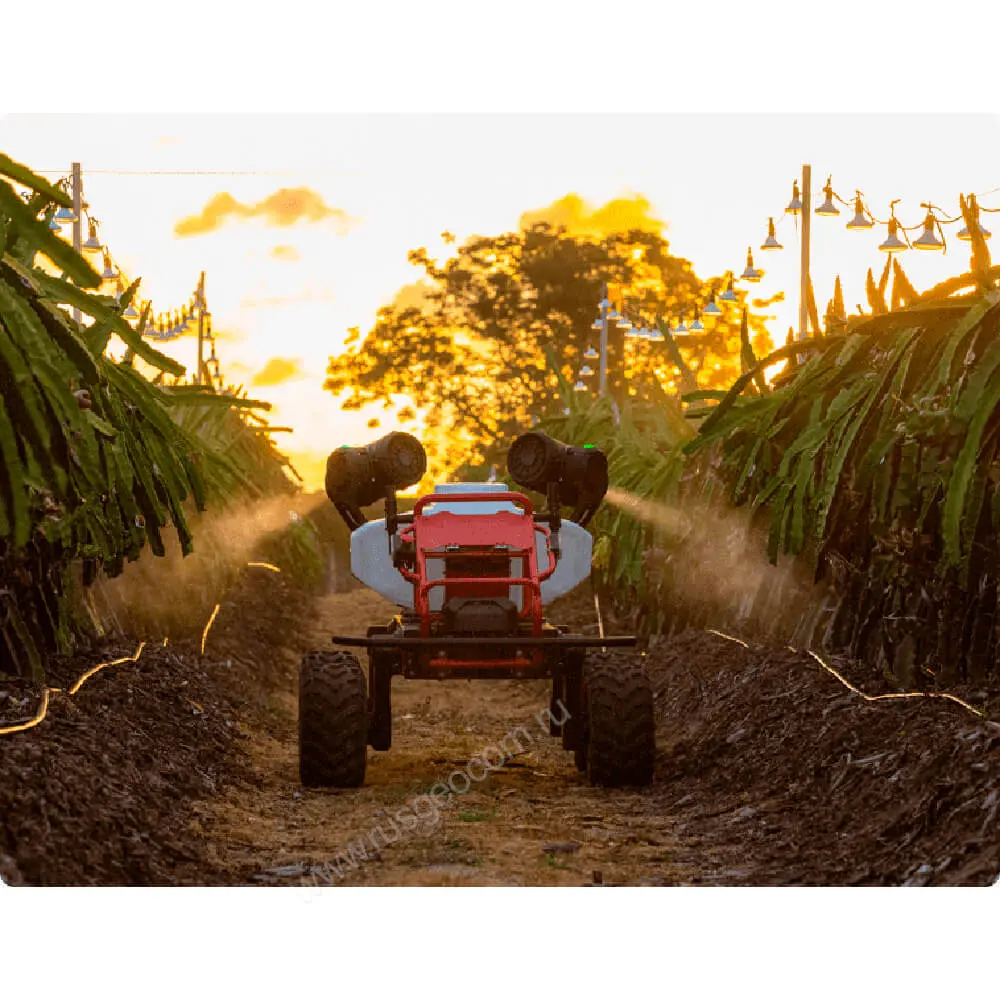 Наземный дрон XAG R150 2020 XAUV Spray Model представляет собой многофункциональный роботизированный агрегат на колесном ходу с аккумуляторным питанием и системой распыления JetSprayer со 100-литровым баком. Оборудование разработано специально для сельскохозяйственной отрасли и может использоваться для внесения удобрений, опрыскивания травянистых растений, кустов и деревьев жидкими растворами. Также прибор позволяет выполнять дезинфекцию больших помещений и территорий: улиц, дворов, стадионов и т.п.