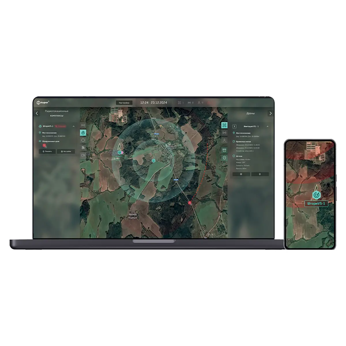 Программный комплекс предназначен для управления средствами защиты и обнаружения беспилотных воздушных судов с целью пресечения дальнейшего полета на защищаемую территорию или объект.