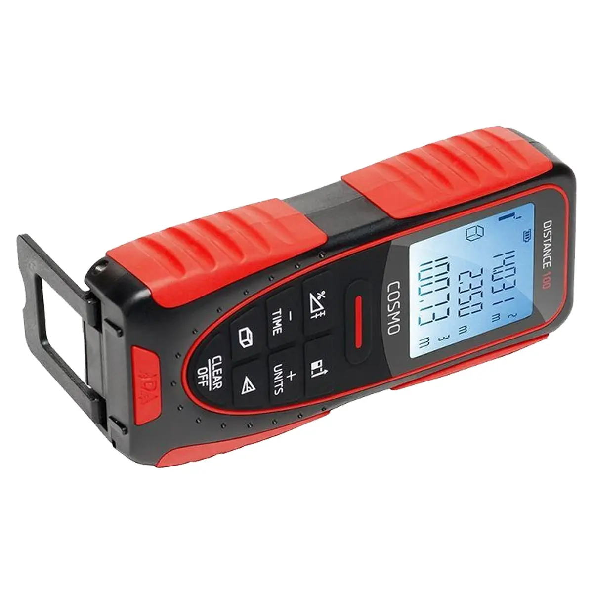 В качестве нулевой точки измерения лазерный дальномер ADA COSMO 100 позволяет использовать как переднюю, так и заднюю грань корпуса. С помощью откидной скобы можно значительно упростить измерения от внешних углов. При измерениях из внутренних углов исходной точкой можно выбрать край скобы, убранной в заднее положение. Купить лазерный дальномер ADA COSMO 100 будет полезно любому специалисту, работающему в строительстве или контролирующих органах.