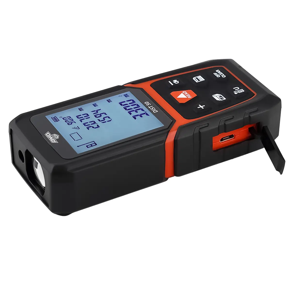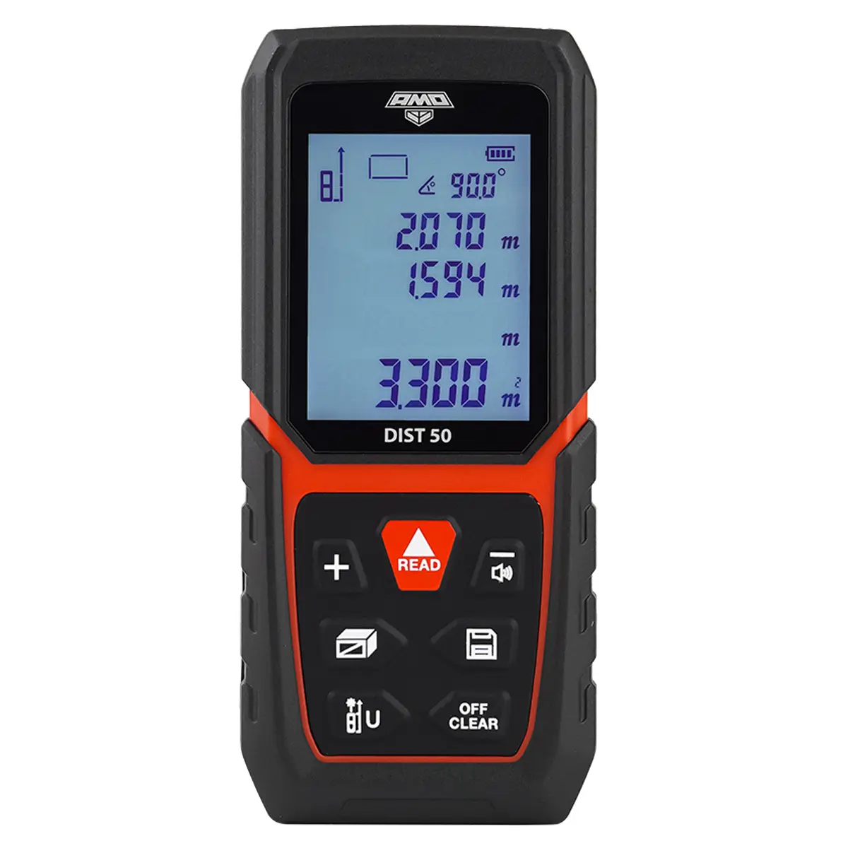 Лазерный дальномер AMO DIST 50 с угломером предназначен для линейных измерений в диапазоне до 50 м с 2-миллиметровой точностью, контроля горизонтальных и вертикальных размеров и расстояний с одновременным отслеживанием угла наклона или возвышения прибора, а также для выполнения разметки в ходе строительно-ремонтных, отделочных и других работ. Улучшенная пыле-влагозащита в соответствии с категорией IP 54, реализованная за счет использования мембранной клавиатуры и наличия заглушки для порта зарядки, дает возможность эксплуатировать прибор как при выполнении работ в помещениях, так и в полевых условиях.