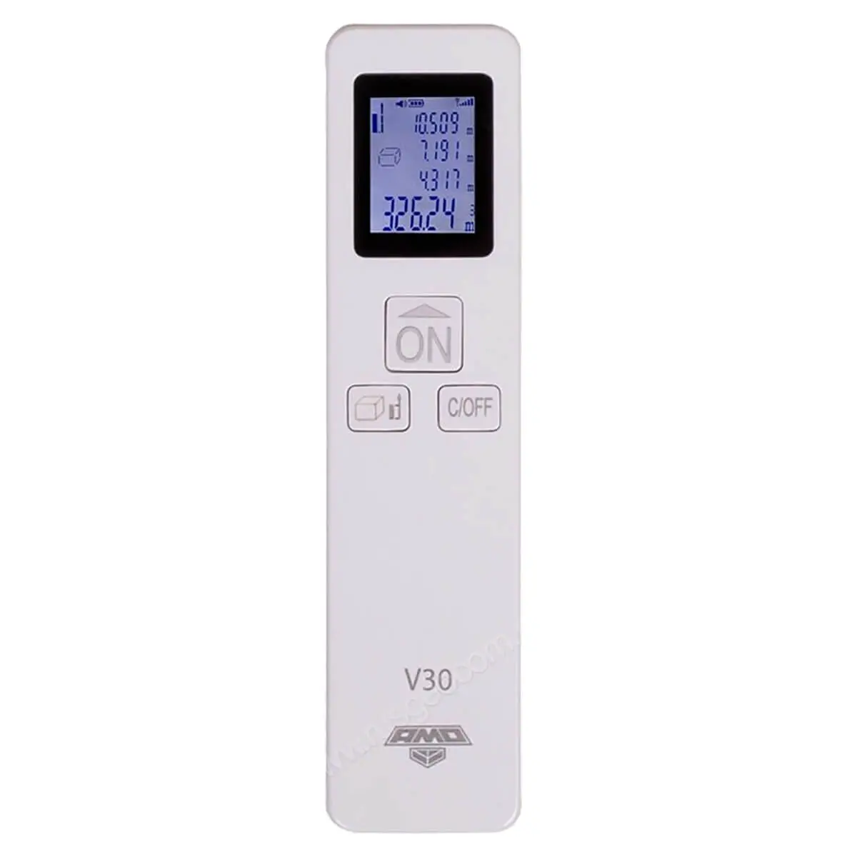 Лазерный дальномер AMO V30 - с широким диапазоном измерений от 3 мм до 35 м и точностью до ±3 мм. Функция подсветки дисплея позволяет использовать прибор в условиях слабого освещения, а для экономии заряда батареи предусмотрено автоматическое отключение устройства через 45 с режима ожидания. Универсальная возможность вычисления в 3 единицах измерения: метрах, футах и дюймах позволяет работать с прибором в различных метрических системах.