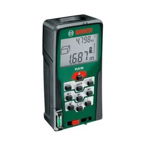 Лазерный дальномер BOSCH PLR 50 предназначен для измерения расстояний в диапазоне от 5 см до 50 м в помещениях или на открытом воздухе. Также с помощью дальномера может выполняться расчёт площадей и объемов по результатам произведенных замеров. Относясь к бытовой серии измерителей, дальномер BOSCH PLR 50 обладает целым рядом важных свойств, характерных для профессиональных моделей.