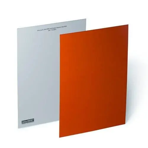 Для получения точных измерений лазерным дальномером на расстояниях от 30 метров рекомендуется использовать штатив и отражающую пластину. Отражатель для дальномеров Leica GZM26 имеет размеры 210x297 мм (А4), одна сторона покрашена в серый цвет и предназначена для измерений на малых расстояниях, вторая сторона - коричневая для больших расстояний. Пластина может быть прикреплена к углу, кромке или вехе.