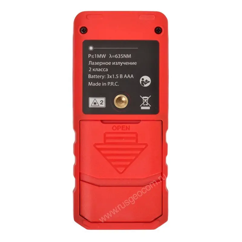 Питание лазерного дальномера RGK DL100 (с поверкой) осуществляется от трех батареек типа ААА или аккумуляторов аналогичного формата. Одного комплекта батарей хватает для 8000 измерений. Для экономии заряда лазер и подсветка экрана автоматически отключаются через 20 секунд, а сам прибор - через 2,5 минуты.