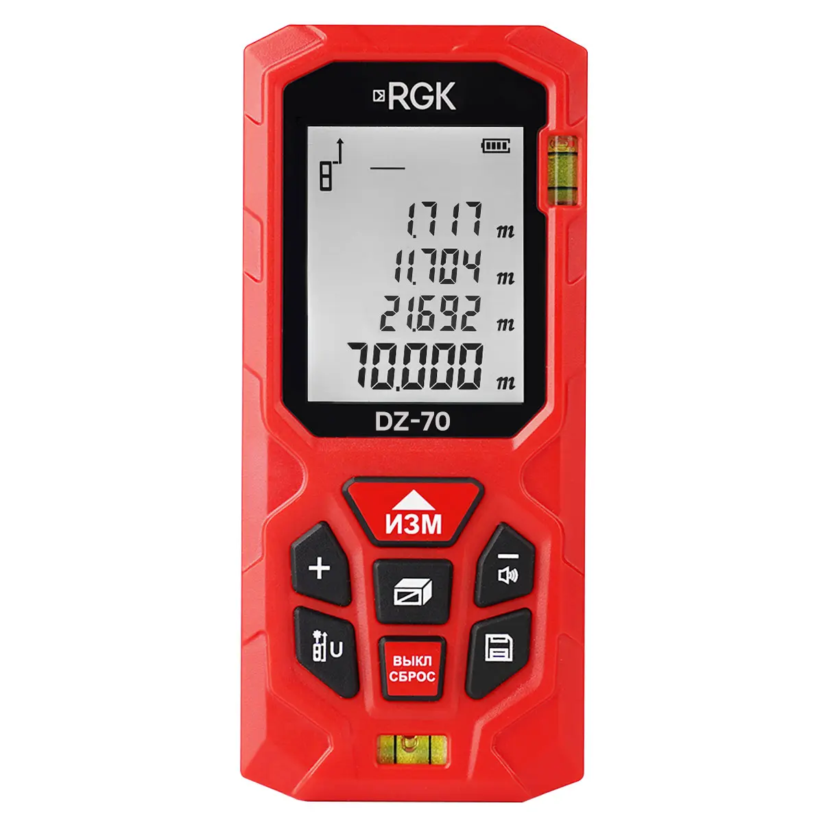 Лазерный дальномер RGK DZ70 представляет собой компактный измерительный инструмент с батарейным питанием, позволяющий определять расстояния до удаленных объектов на дистанциях до 70 м с точностью ±2 мм бесконтактным методом. Прибор снабжен крупноразмерным 4-строчным дисплеем, обеспечивающим высокую наглядность, и встроенными поперечным и продольным пузырьковыми уровнями на передней панели – для измерения высот и горизонтальной дальности.