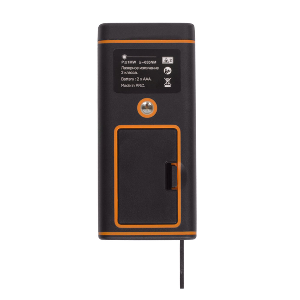 Корпус из приятного на ощупь пластика выдерживает падение с высоты до метра, а рифлёные края и комфортный вес не дают прибору выскользнуть из руки. С выпуклыми кнопками управления легко работать на ощупь, а расстояние между ними позволяет пользоваться дальномером RGK D60 даже в перчатках. Каждая функция имеет свою уникальную кнопку.